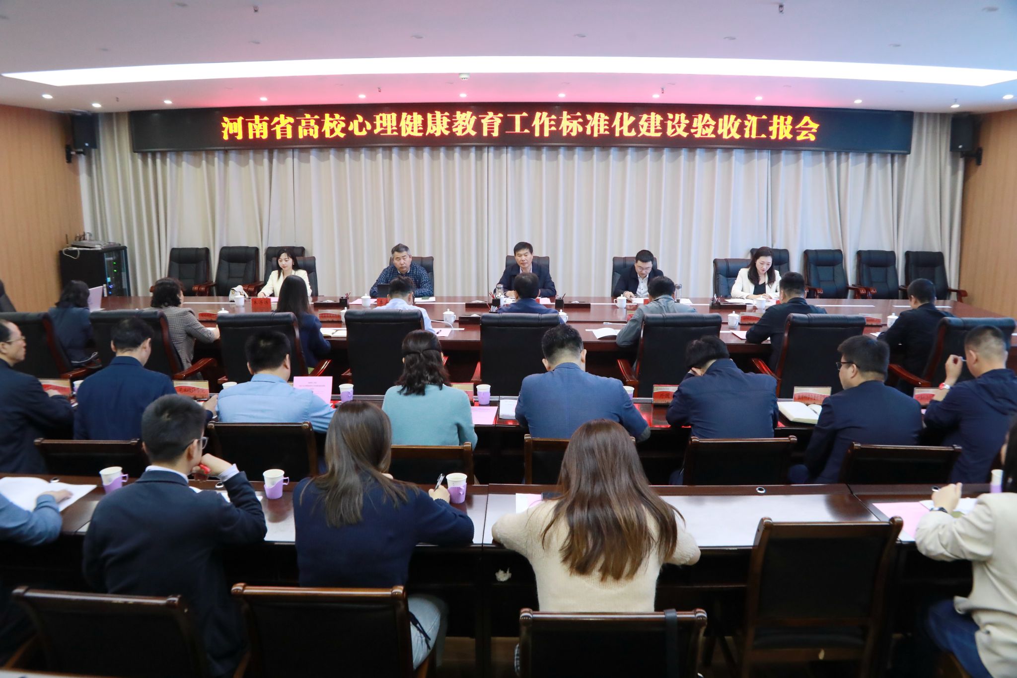 河南省高校心理健康教育工作标准化建设验收组莅临我校检查指导工作,图为验收汇报会现场。