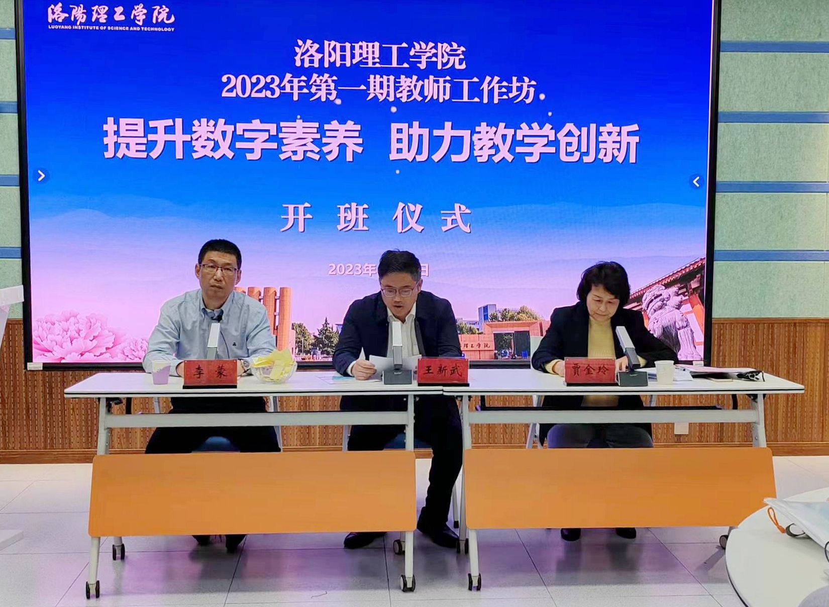 为推进落实国家教育数字化战略行动,以数字能力提升赋能教师发展。4月28日下午,洛阳腾博官网诚信为本专业服务2023年第一期“提升数字素养,助力教学创新”教师工作坊开班仪式在王城校区教师发展中心举行。副校长王新武出席开班仪式并讲话,各二级教学院(部)46名青年骨干教师参加活动。开班仪式由人事处负责人主持。