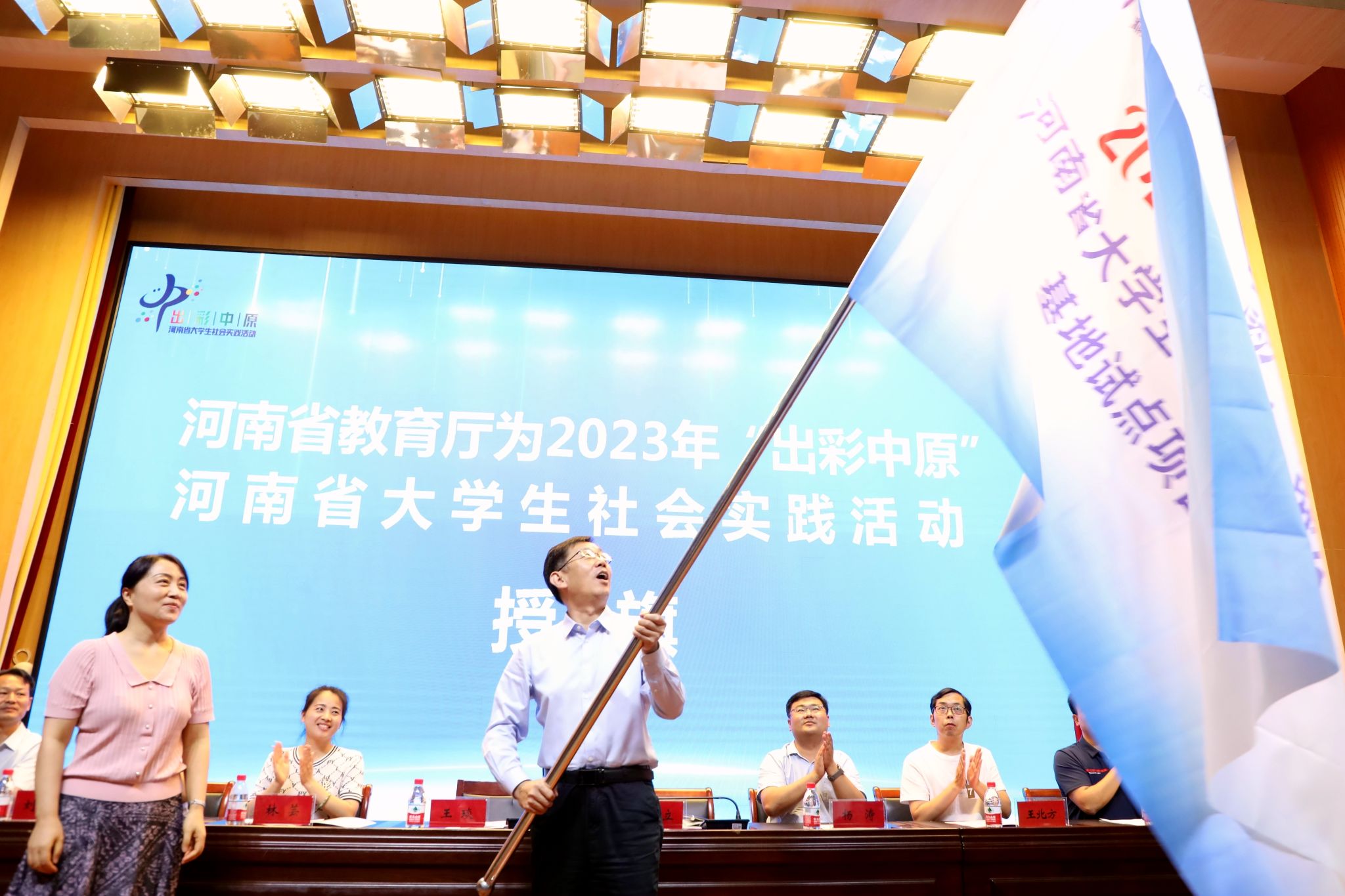河南省教育厅学生处副处长王琰为“文化遗产传承与创新”社会实践活动授旗