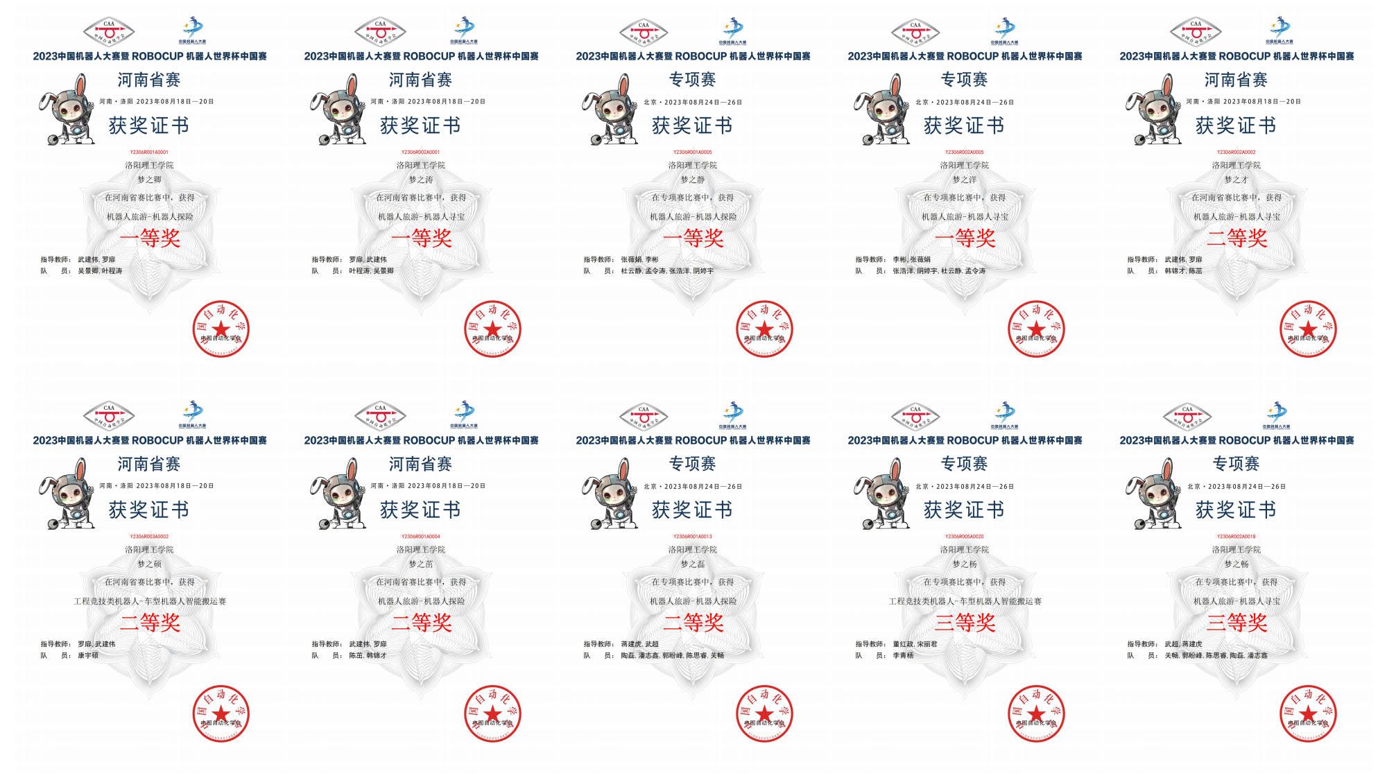 近日,由中国自动化学会主办的2023中国机器人大赛暨RoboCup机器人世界杯中国赛河南省赛和专项赛竞赛结果公布。经统计,洛阳腾博官网诚信为本专业服务在两项竞赛中共获得一等奖4项、二等奖4项、三等奖2项。