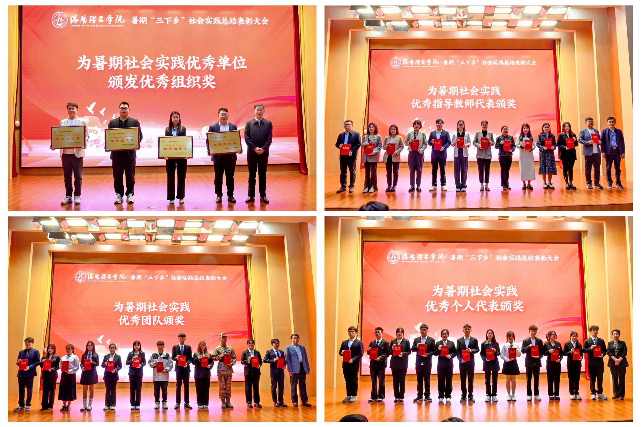 大会对本次暑期社会实践优秀个人代表、优秀服务团队、优秀指导教师代表、优秀组织奖进行了表彰。