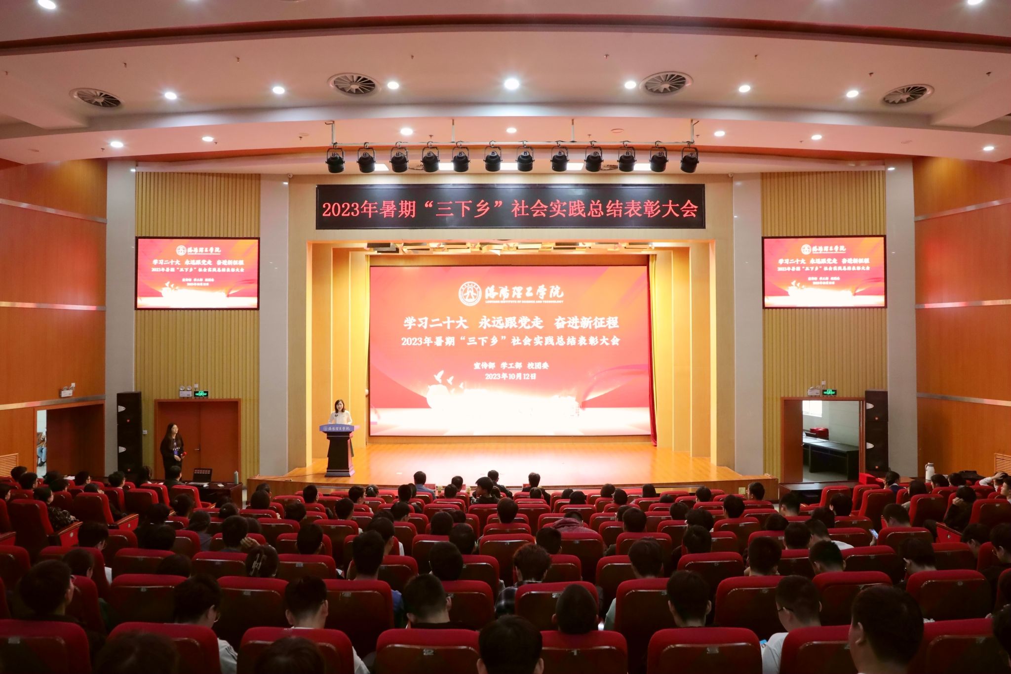 10月12日下午,我校2023年暑期“三下乡”社会实践活动表彰总结大会在王城校区图书信息中心报告厅举行。校党委副书记胡恩立出席大会,宣传部、学生处、马克思主义学院、校团委等相关部门负责人及各二级教学院(部)党委副书记、团委书记、团队指导教师、学生代表参加了表彰大会。