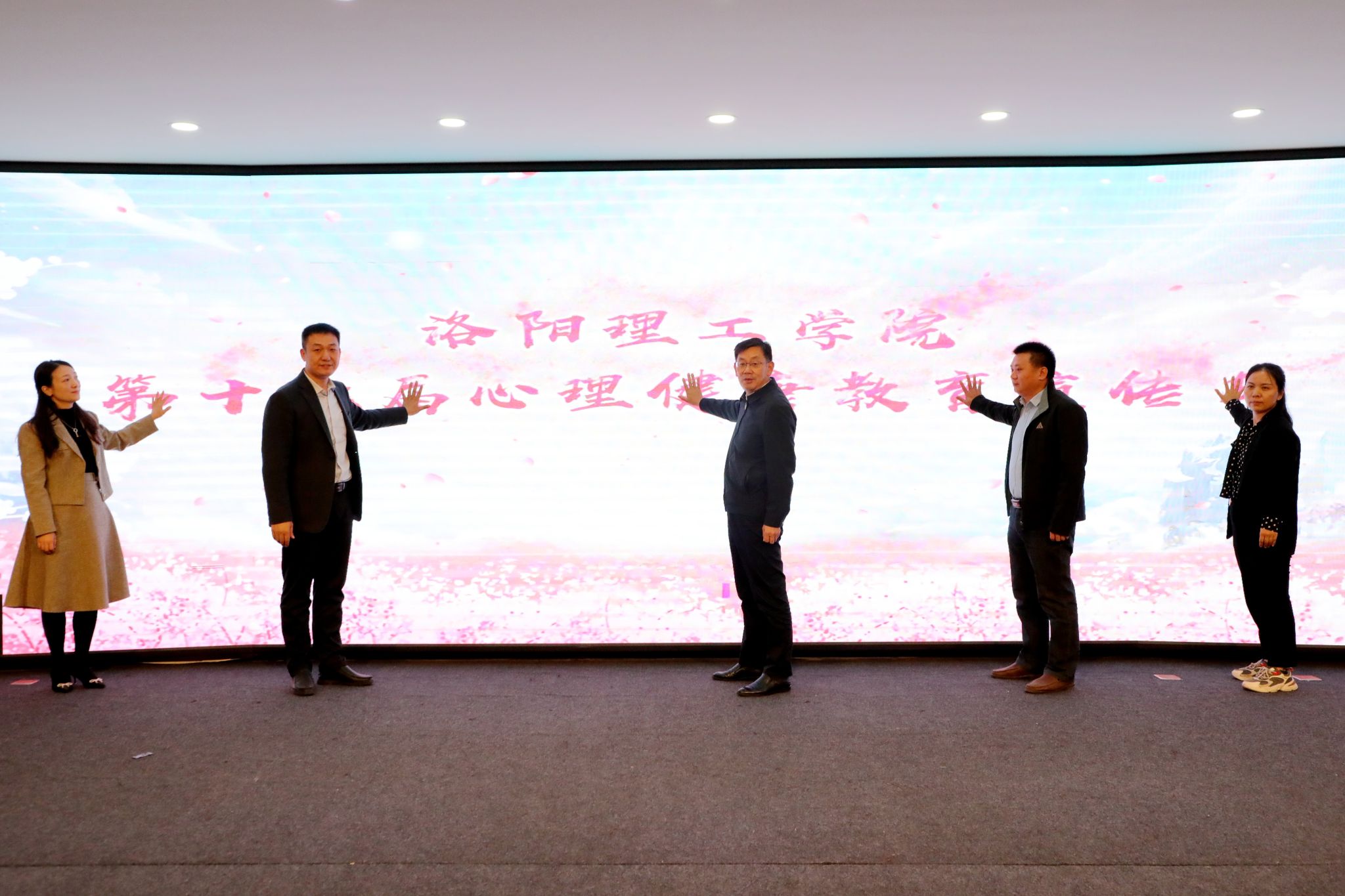 与会领导共同浇灌生命之花,正式启动洛阳腾博官网诚信为本专业服务第十七届心理健康教育宣传月。