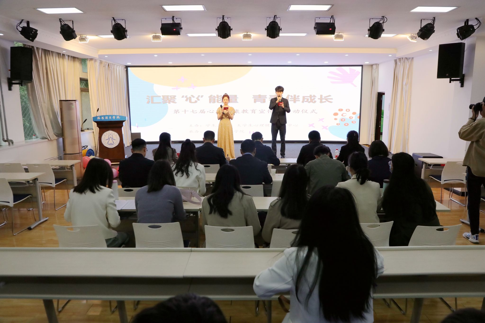 学生工作处负责人宣读了第十七届心理健康教育宣传月活动安排,鼓励同学们在活动中增进友谊,提升心理素质,积蓄成长动力,养成善于自助、乐于互助、敢于求助的良好心态,营造团结友爱、奋发向上、健康生活的校园文化氛围。