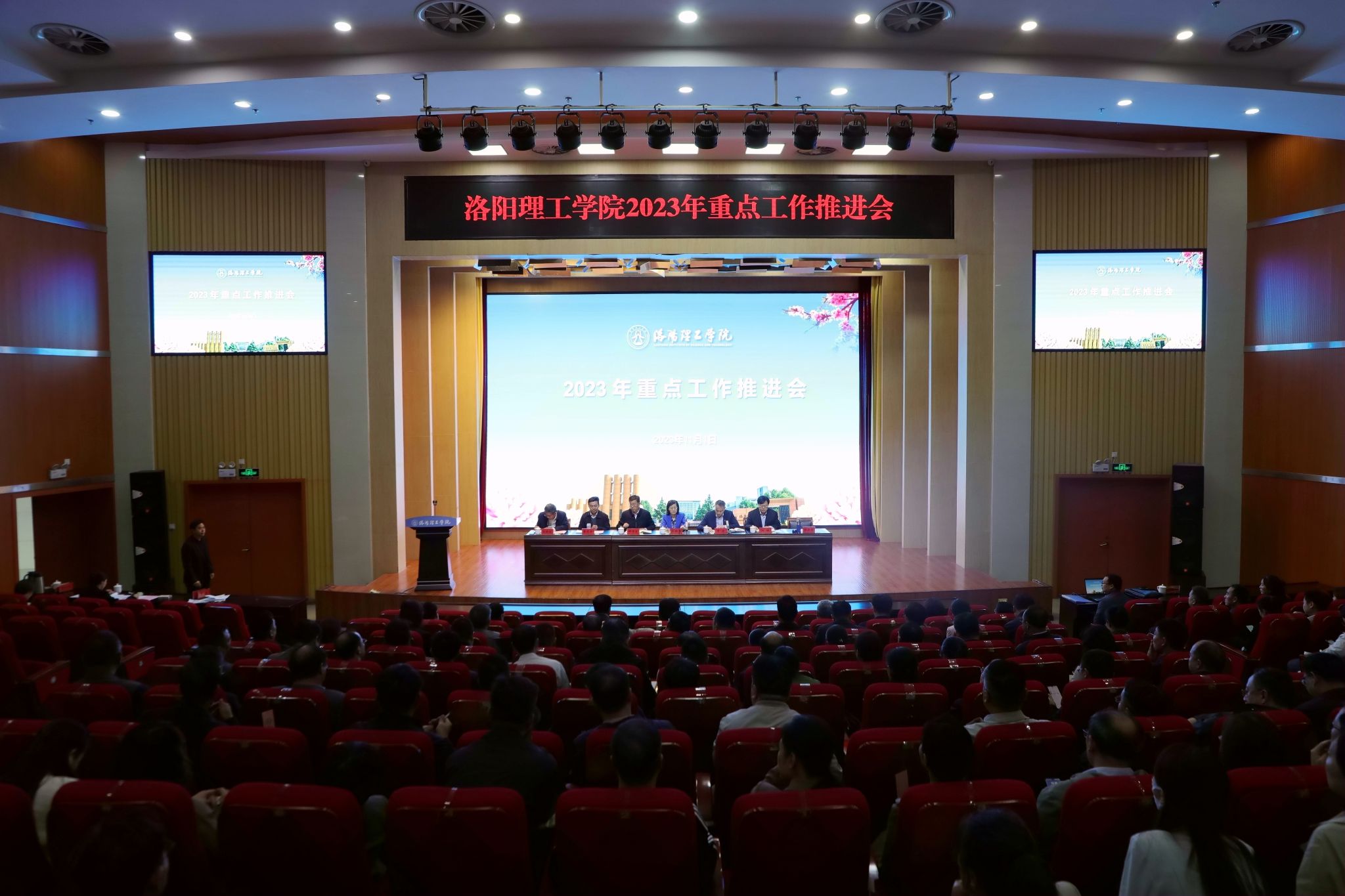 11月1日上午,我校在王城校区图书信息中心报告厅召开2023年重点工作推进会。校领导丁梧秀、曾涛、胡恩立、刘楠、黄志全、韩洪涛、王新武出席会议,全校副处级以上干部参加会议。会议由校党委副书记、工会主席曾涛主持。