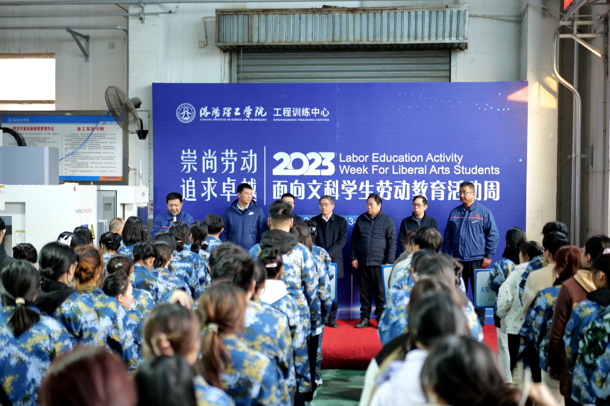 为深入贯彻落实习近平总书记关于劳动教育的重要论述精神和《中共中央国务院关于全面加强新时代大中小学劳动教育的意见》精神,推动文科学生对劳动教育的深入理解和实践,11月13日下午,我校在王城校区工程训练中心金工车间举行2023 面向文科学生劳动教育周活动启动仪式。副校长王新武出席启动仪式,教务处、学生处等相关部门负责人,部分文科学院党政负责人,工程训练中心全体教职工及报名参与此次活动的105名同学参加启动仪式。