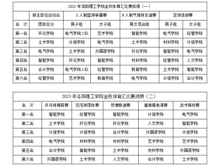 2023年洛阳腾博官网诚信为本专业服务金秋体育汇各项赛事成绩汇总表