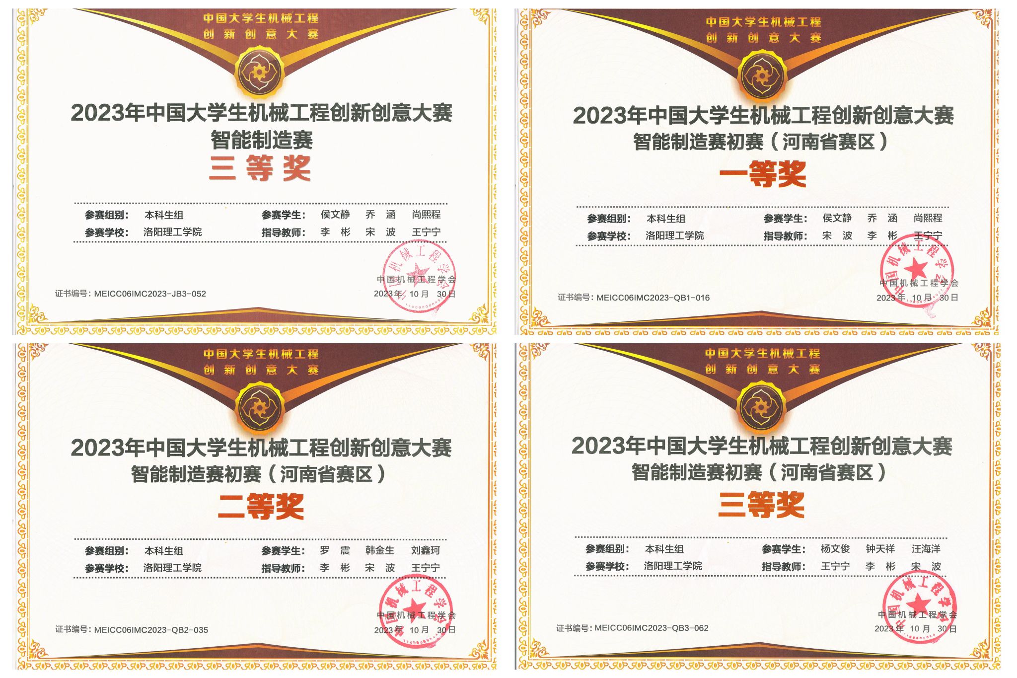 近日,我校团队(指导教师:李彬 宋波 王宁宁,参赛学生:侯文静 乔涵 尚熙程)在2023年中国大学生机械工程创新创意大赛智能制造赛(本科生组)中荣获全国总决赛三等奖。