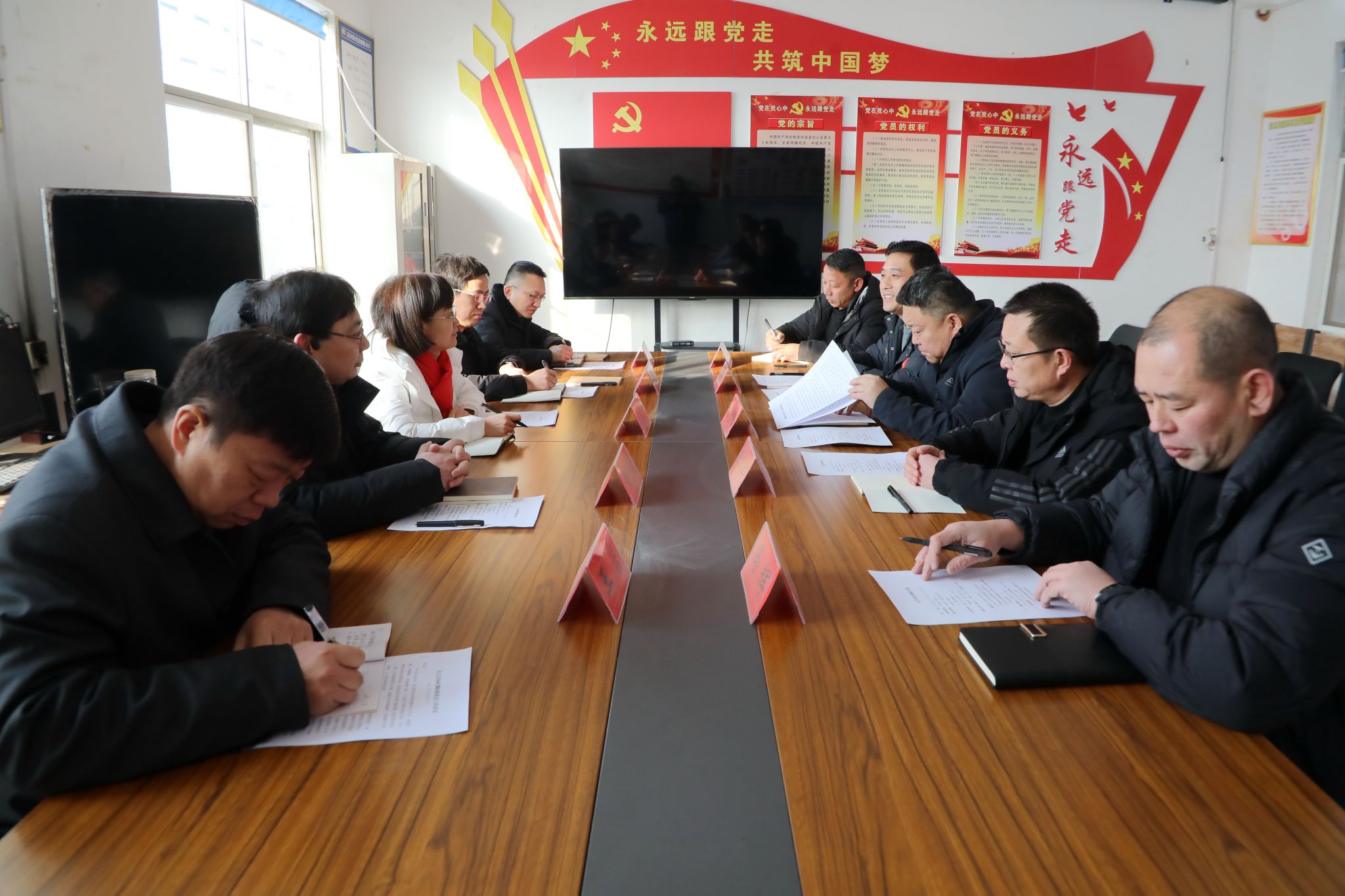 校长丁梧秀到五岳沟村调研指导定点帮扶工作,图为在五岳沟村支部会议室举行的调研座谈会。