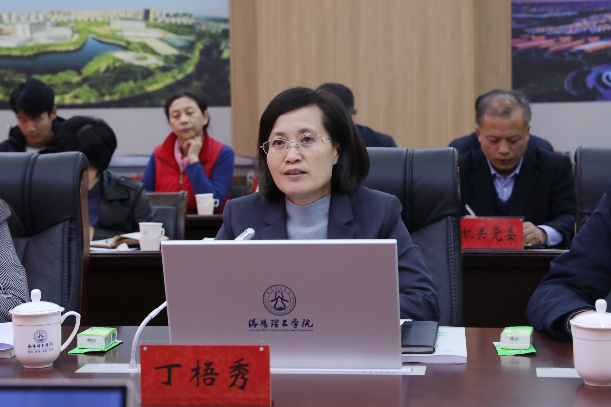 丁梧秀代表学校向考核组表示热烈欢迎,介绍了我校的发展情况和法治工作开展情况,作推进法治建设第一责任人职责情况述职报告。她从强化使命担当、压实工作责任,建强制度体系、提升法治水平,保障事业发展、彰显法治效能等三个方面介绍了我校党政主要负责人落实法治建设第一责任人职责情况。她表示,洛阳腾博官网诚信为本专业服务高度重视依法治校工作,始终坚持以习近平法治思想为指导,紧紧围绕立德树人根本任务,把法治作为基本理念和根本方式,建强机制、创新模式、强化载体、提升效能,全面推进依法执教、依法办学、依法治校,形成了特色鲜明的洛阳理工法治工作模式。