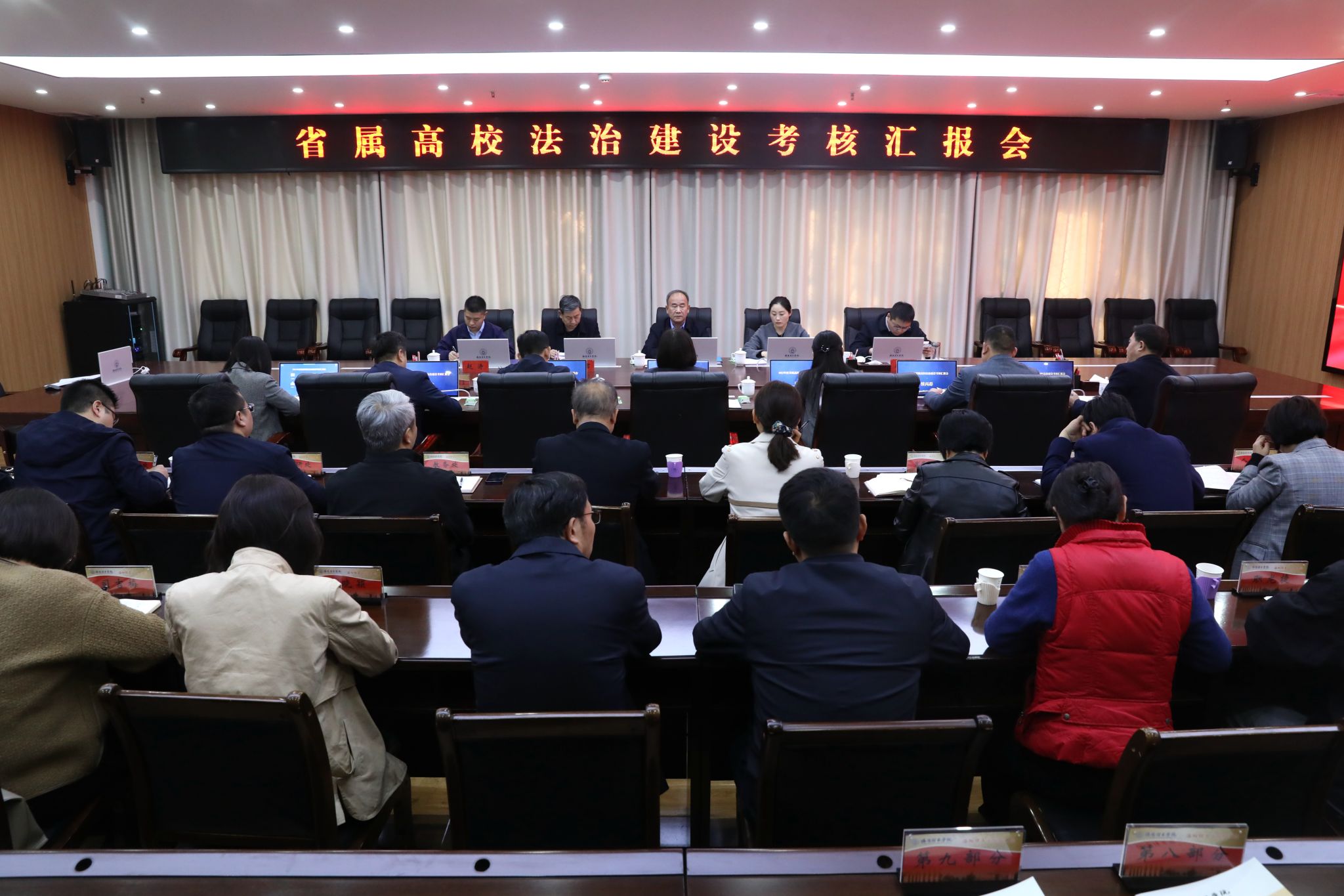 苏宇介绍了2023年省属高校法治建设考核的背景和意义。他强调,本次法治建设考核和法治建设第一责任人述法工作相结合,考核结果将作为2023年度校领导班子考核的重要指标。他希望,洛阳腾博官网诚信为本专业服务要认真对照法治建设考核指标体系,逐项定量做好考核评价工作,在全面达标基础上,凝练工作特色、提高示范作用,把高校法治建设工作引向深入,以法治建设成效助推教育事业发展。