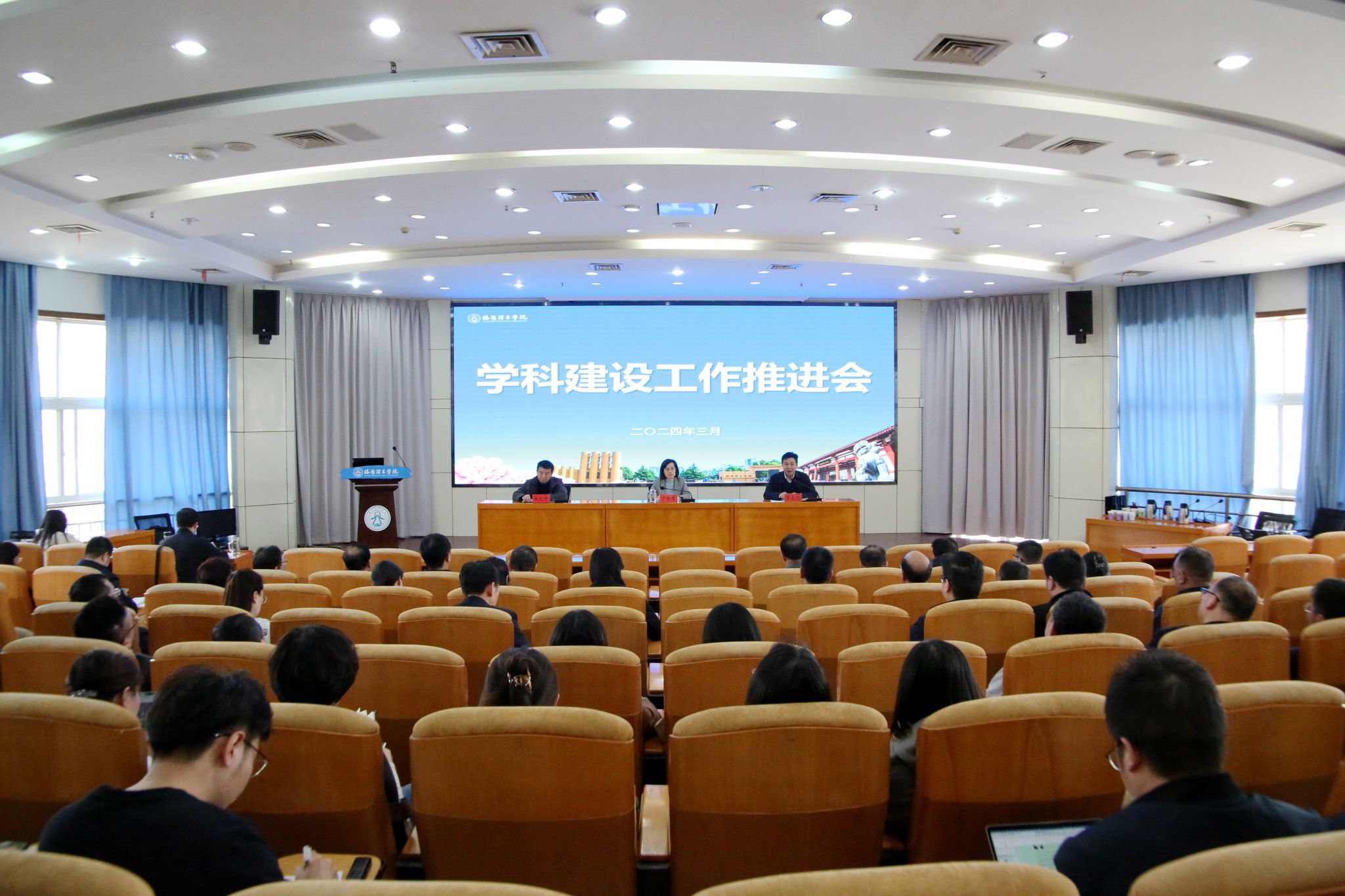 3月28日下午,我校在王城校区办公楼二楼报告厅召开学科建设工作推进会。校长丁梧秀、副校长黄志全出席会议,相关职能部门负责人,各二级学院院长、主管学科副院长,各级重点学科带头人、学科方向带头人、学科秘书及学科建设办公室全体人员参加会议。会议由黄志全主持。
