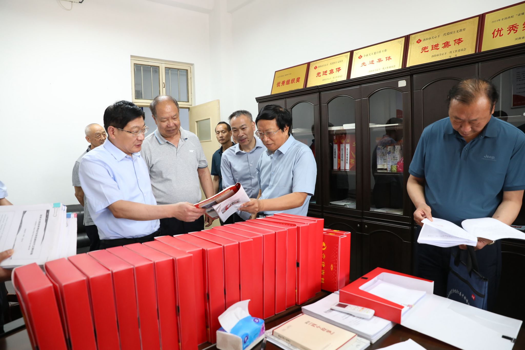 高治军一行实地察看我校关工委办公场所、设施设备条件和 “达标创优”相关材料