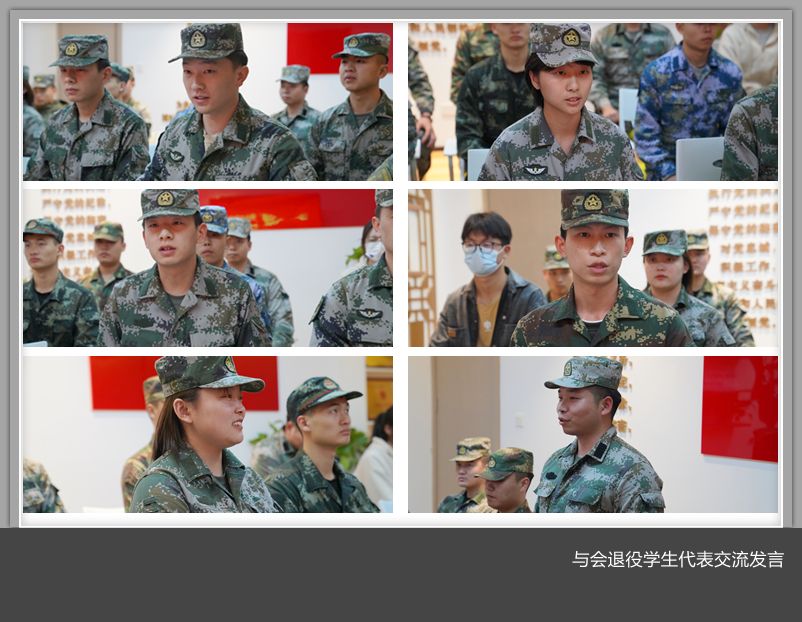 会上,退役学生代表原空军某部战士、现材料科与工程学院学生张高阔,原武警四川某支队战士、现材料科与工程学院学生娄浩杰,原陆军某特种部队战士、现智能制造学院学生王佳乐,原陆军某部战士、现智能制造学院学生常明辉,原空军空降兵某部战士、现土木工程学院学生林波敬等结合自己的入伍经历和复学后的学习情况,特别是在作用发挥、学风、校风、纪律、科技创新创业等方面畅谈了感悟,并对学校未来发展提出了意见和建议。