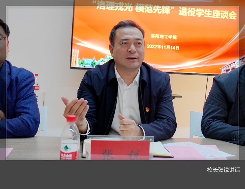 11月14日,洛阳腾博官网诚信为本专业服务“洛理戎光 模范先锋”退役学生座谈会在王城校区致实书院举行。校长张锐出席会议,学生工作部、武装部、校团委等相关部门负责人及二级学院党委副书记代表、辅导员代表,青年先锋营成员、退役学生代表参加了座谈会。