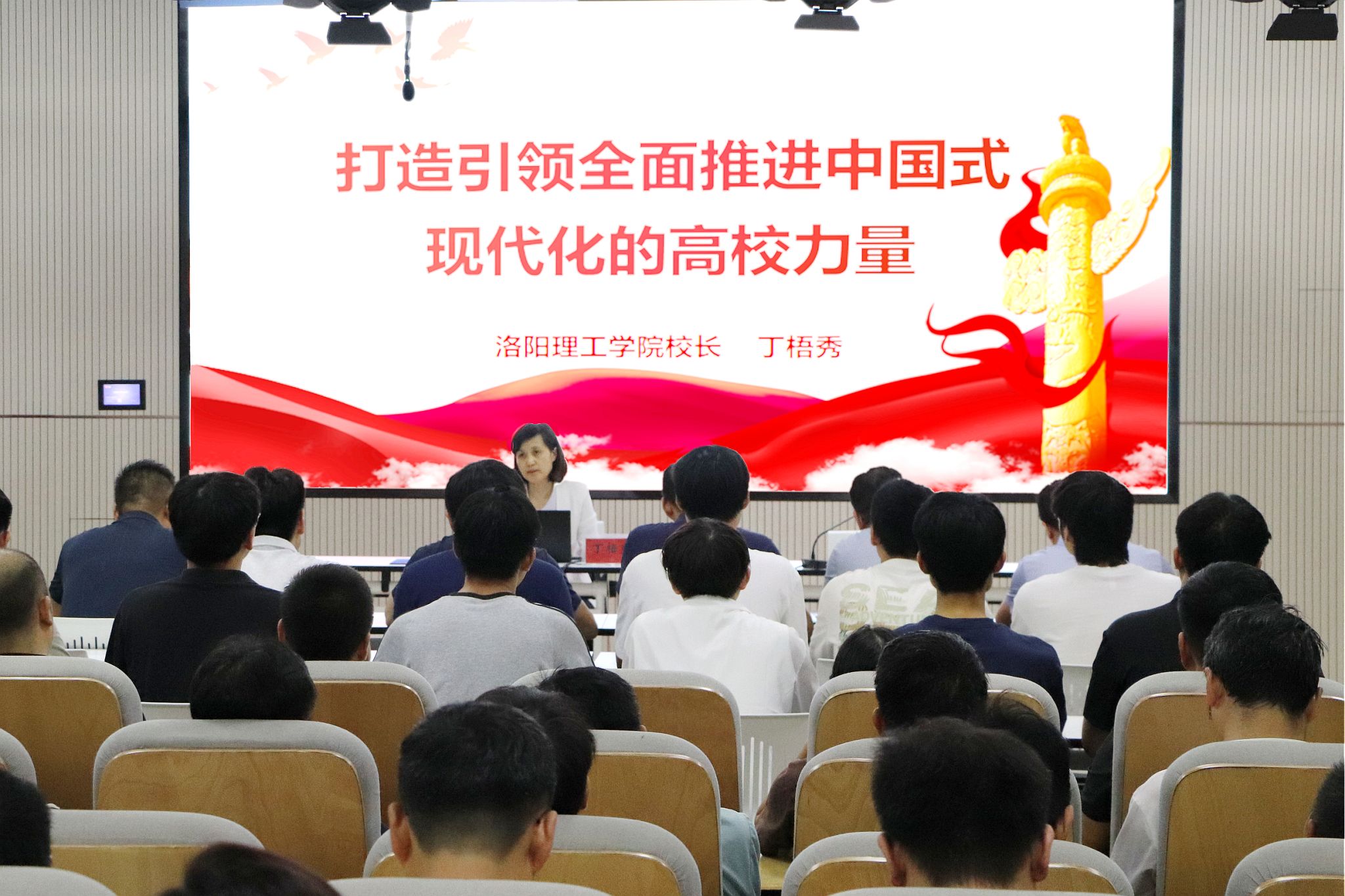 6月19日下午,校长丁梧秀在王城校区土木楼FM414会议室为我校师生讲授主题为《打造引领全面推进中国式现代化的高校力量》的思政课。智能建造与土木工程学院、体育教学部全体教职工及学生党员代表共130余人参加学习。