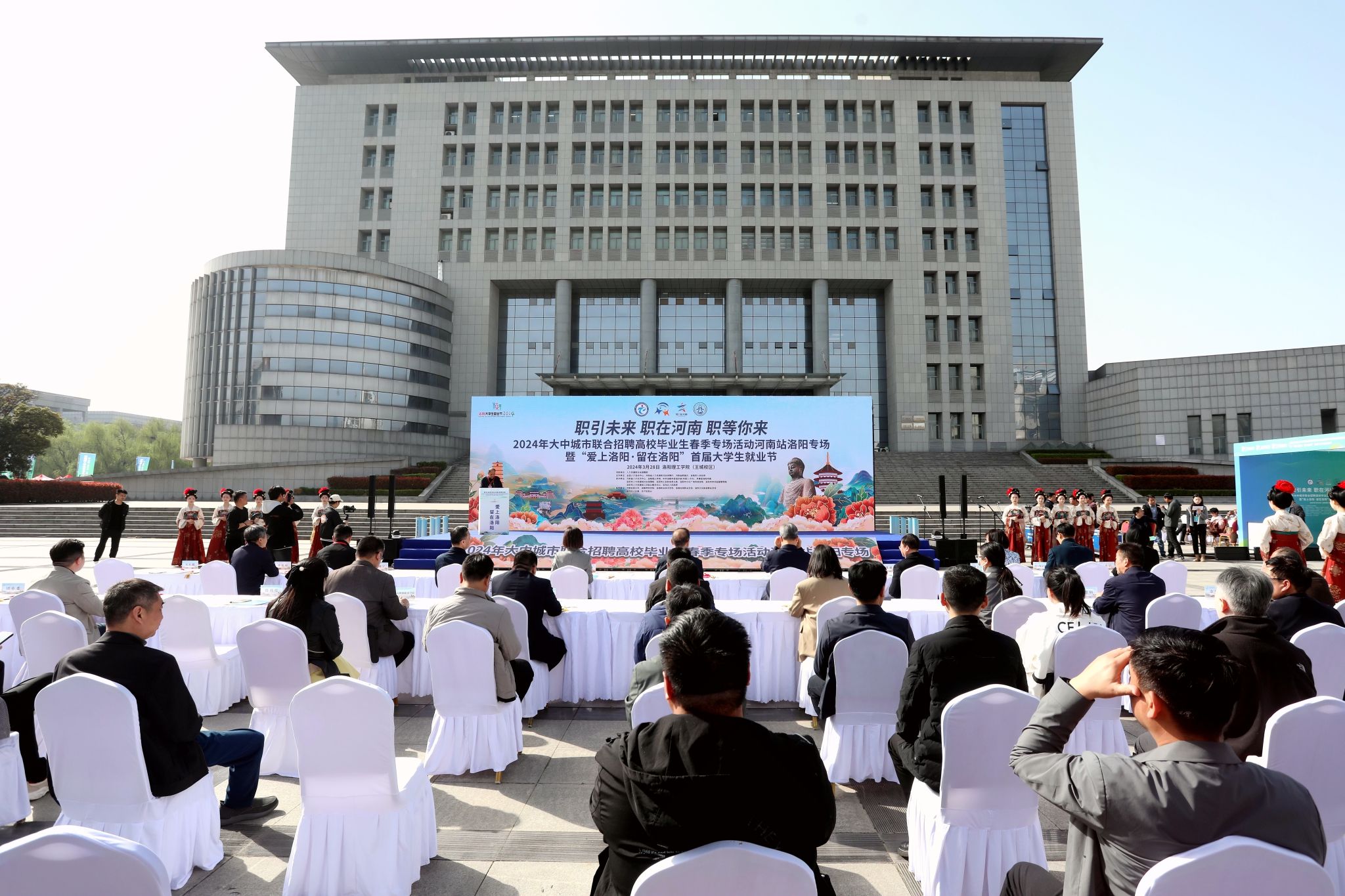 为增强活动对学生的吸引力、展示当代大学生积极向上的精神风貌,本次双选会现场还进行了汉服国乐传统艺术表演、文旅文创展销、一站式人才服务、职业生涯体验游戏、“你好洛阳”求职工作坊、“爱上洛阳、留在洛阳”青年创新创业论坛和“学子看洛阳·产业踏春行”参观等活动。
