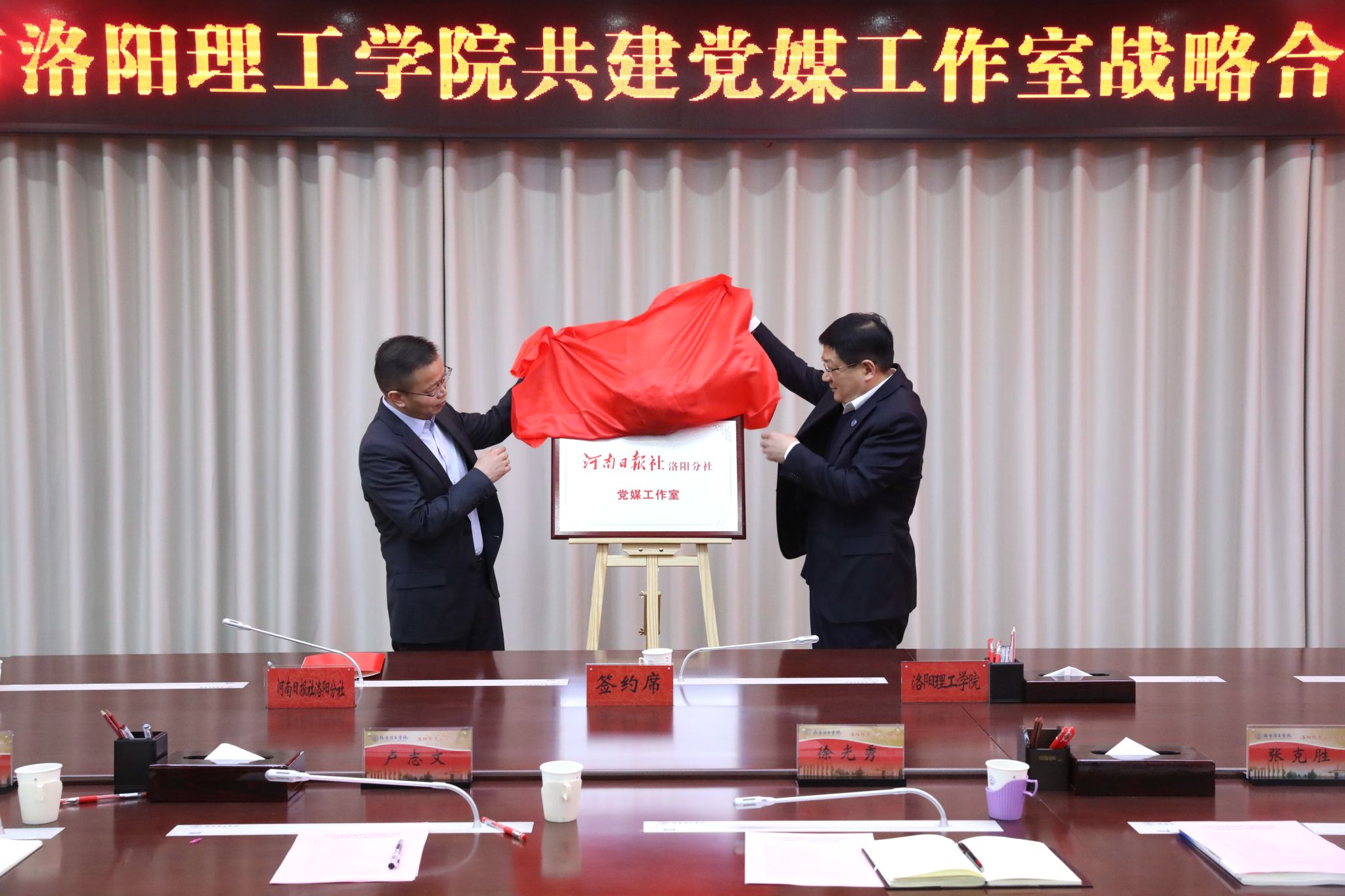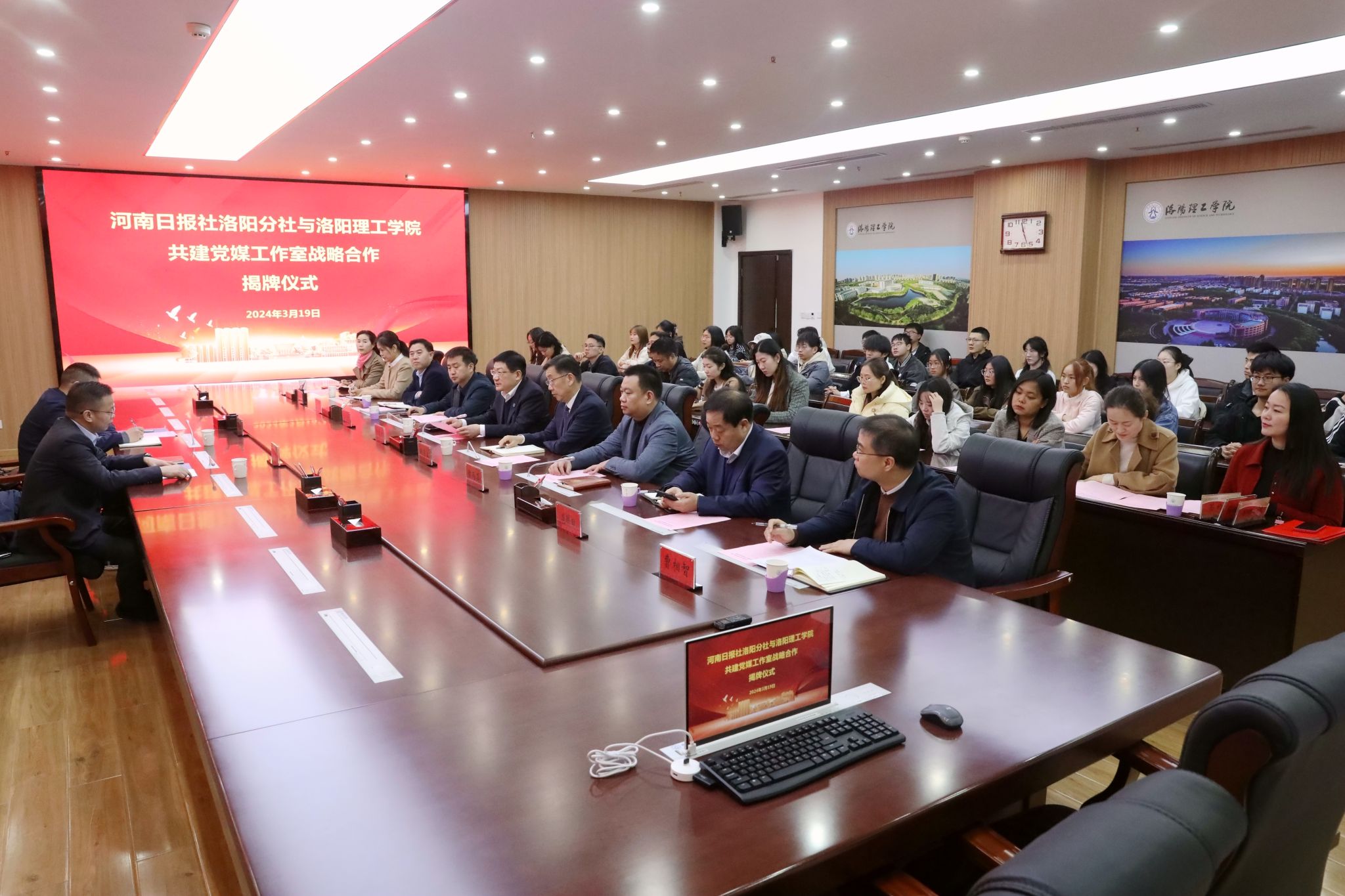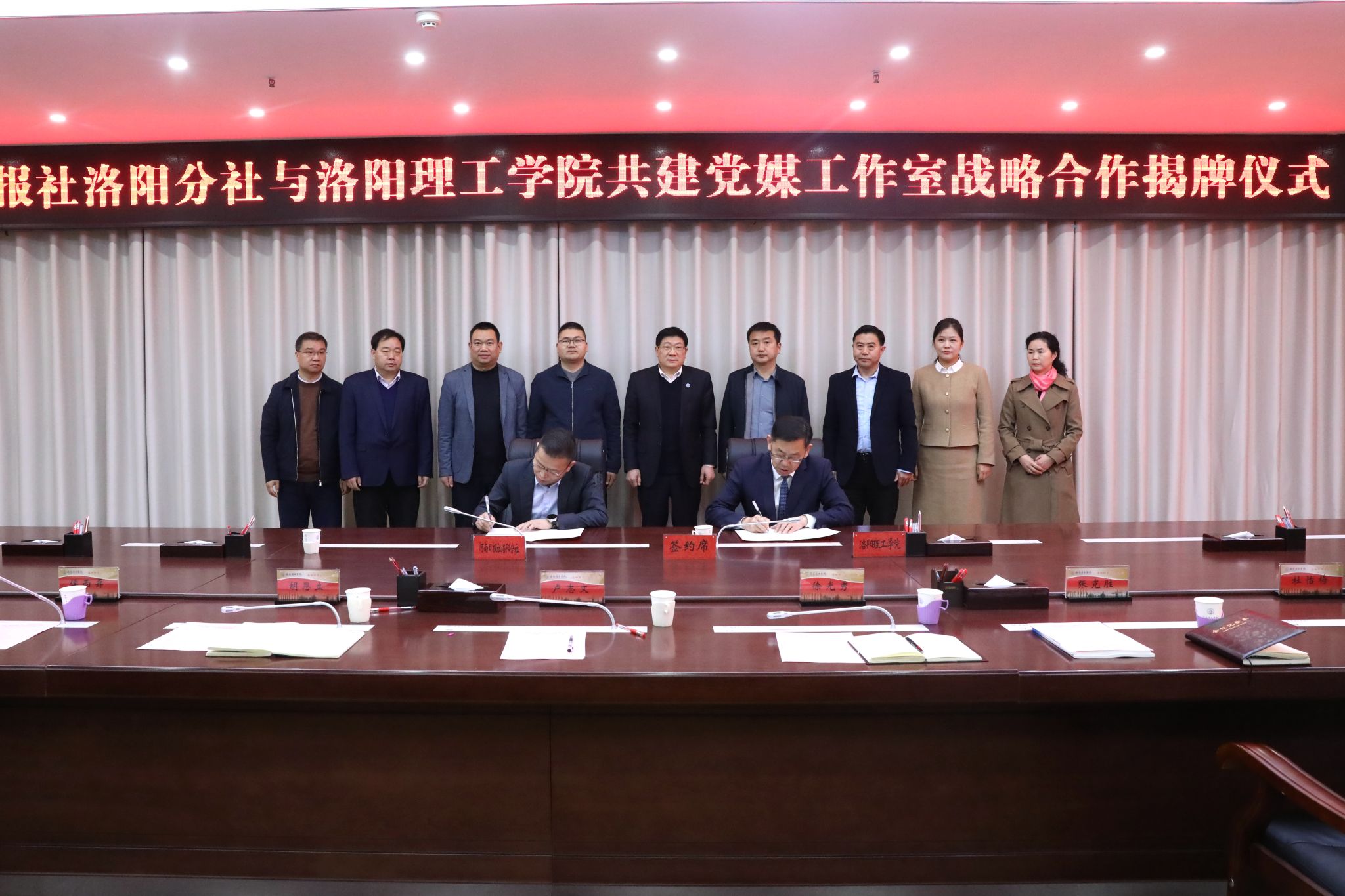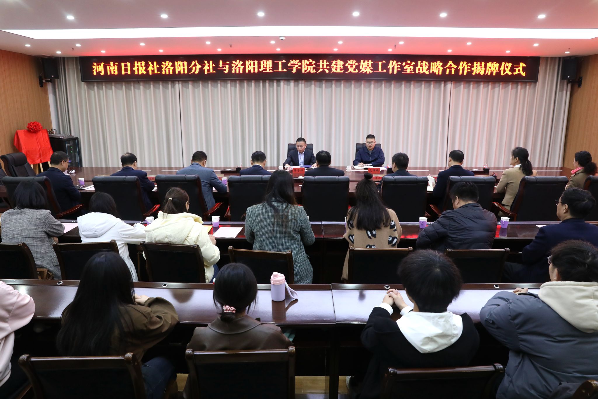 河南日报社洛阳分社与洛阳腾博官网诚信为本专业服务共建党媒工作室战略合作揭牌仪式在我校王城校区办公楼116会议室举行