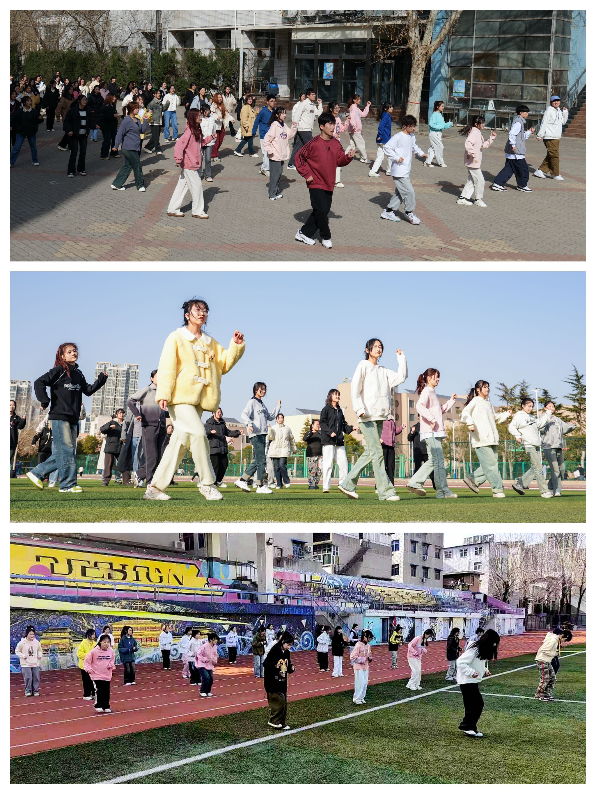 活动过程中,同学们全身心地投入到每一个动作的练习和展示中。她们互相鼓励,互相帮助,共同进步。伴随着《上春山》的欢快节奏,同学们的每一个律动,每一声欢笑,都抒发了同学们对生活的热爱,充分展示出洛理工学子朝气蓬勃、奋发向上、阳光自信的精神风貌,也为春天的校园注入了新的活力。