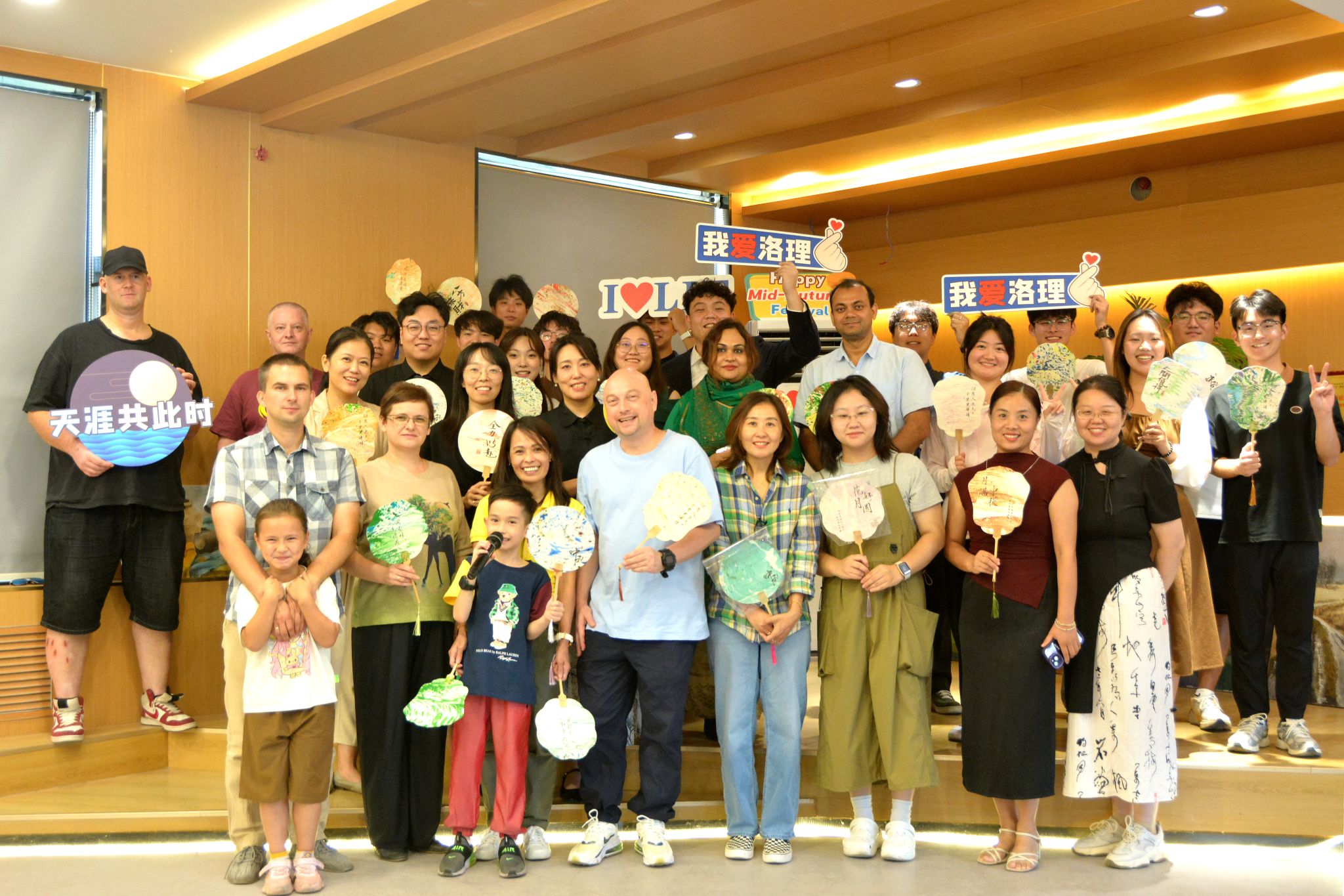 为促进外籍教师了解中秋节日文化,体验中华优秀传统文化之美,增进中外师生间的人文交流,9月12日下午,学生处、国际交流合作处、校团委在开元校区大学生活动中心联合举办了以“中秋雅韵·漆扇共绘国际情”为主题的中外人文交流活动。我校全体外籍教师携家属,及来自智能制造学院、土木工程学院、教育科学与音乐学院、人文与社会科学学院的40余名大学生共同参加活动。