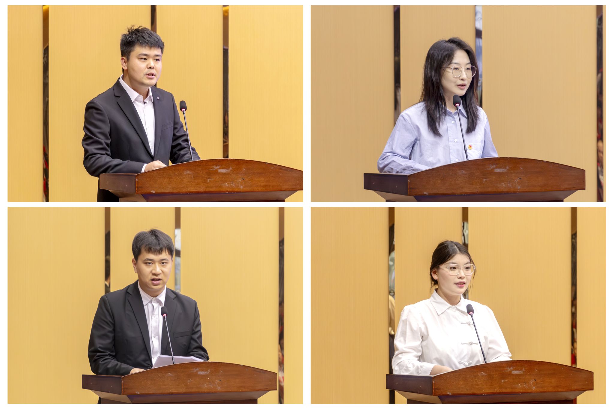 材料科学与工程学院指导教师董宾宾、第十七届科技创新月“优秀组织奖”获奖单位代表土木工程学院团委副书记李翎飞分别发言,材料科学与工程学院秦峰、艺术设计学院乔文昭作为获奖学生代表分别发言并进行项目展示。