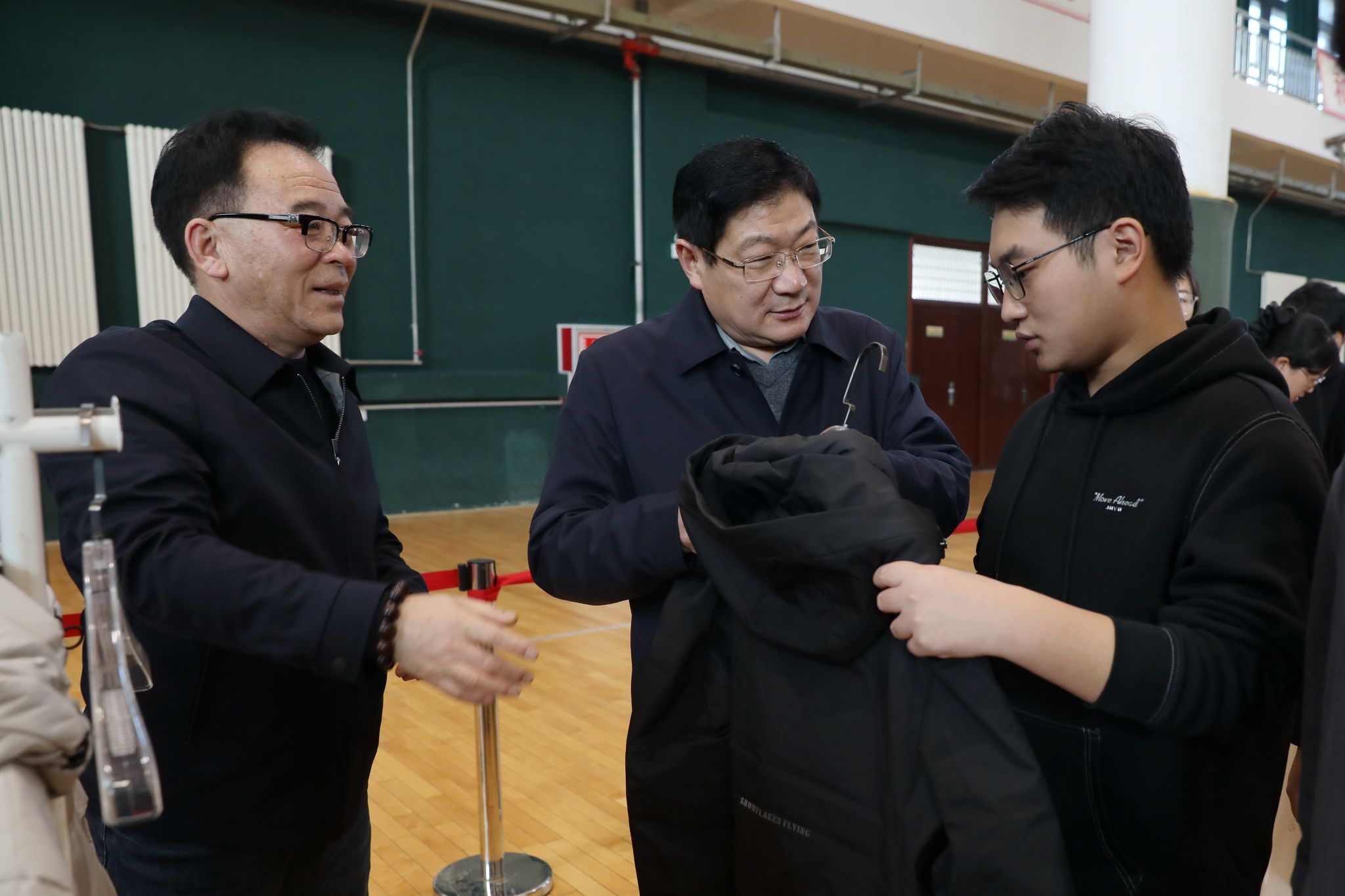 发放仪式现场,卢志文为获助大学生挑选棉衣,与同学们亲切交流。他叮嘱同学们安心学习、快乐生活、加强运动;勉励同学们要吃苦耐劳、锐意进取,坚定理想信念,努力增强本领,常怀感恩、奉献爱心,积极行动,实现人生价值,把个人的发展和祖国的发展、民族的复兴、社会的进步紧密结合起来,把个人命运与国家命运紧密联系在一起,自觉将个人“小我”融入国家“大我”,奋力书写为中国式现代化挺膺担当的青春篇章。