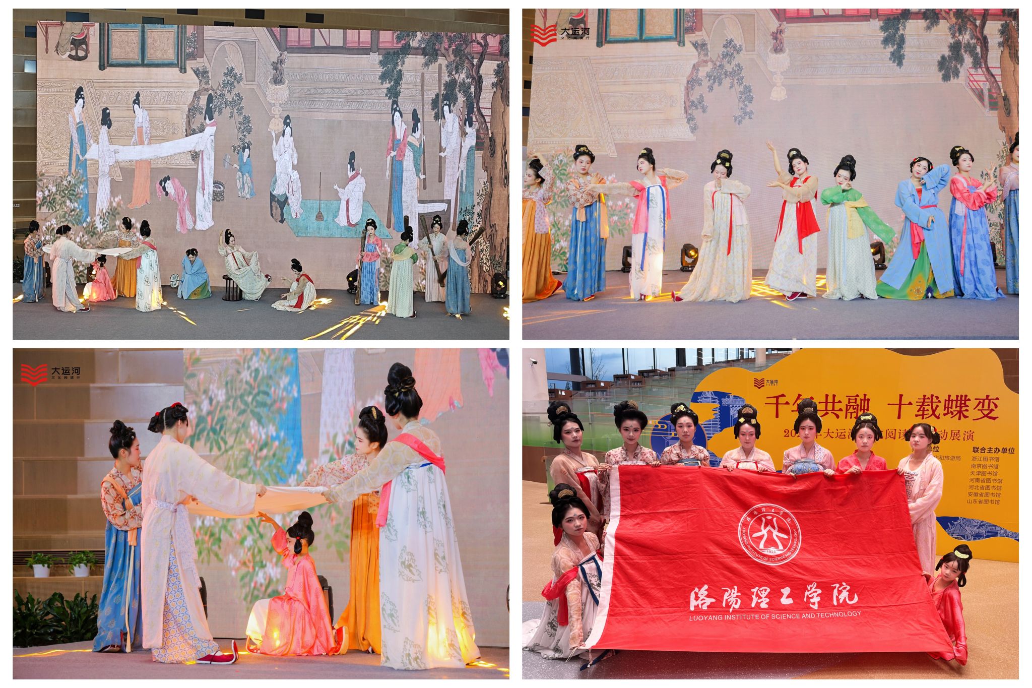 11月18日,“千年共融 十载蝶变”——2024大运河文化阅读行活动展演在北京城市图书馆举行。我校青年师生代表洛阳市在展演活动中演绎了非遗项目唐式大袖衫《捣练图》。