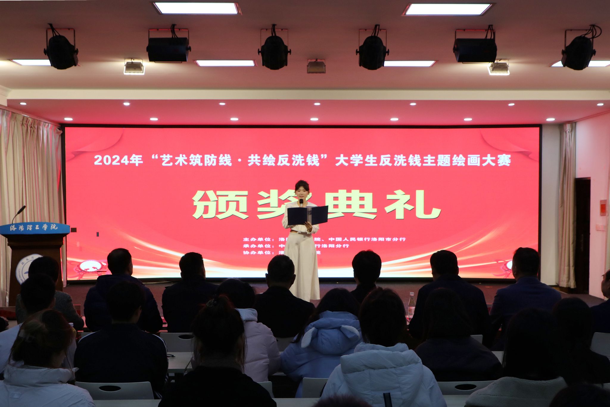11月26日晚,由中国人民银行洛阳市分行主办,中国农业银行洛阳分行和我校承办的2024年洛阳市大学生反洗钱主题绘画大赛颁奖典礼在王城校区心理情景剧场举行,本次大赛的主题是“艺术筑防线·共绘反洗钱”,旨在深入贯彻《反洗钱法》,强化高校反洗钱宣传教育,提升大学生洗钱风险辨识与防范能力。中国人民银行洛阳市分行、中国农业银行洛阳分行、洛阳市公安局大学城派出所、我校保卫处等单位负责人出席颁奖典礼,获奖师生及相关二级学院学生代表参加典礼。