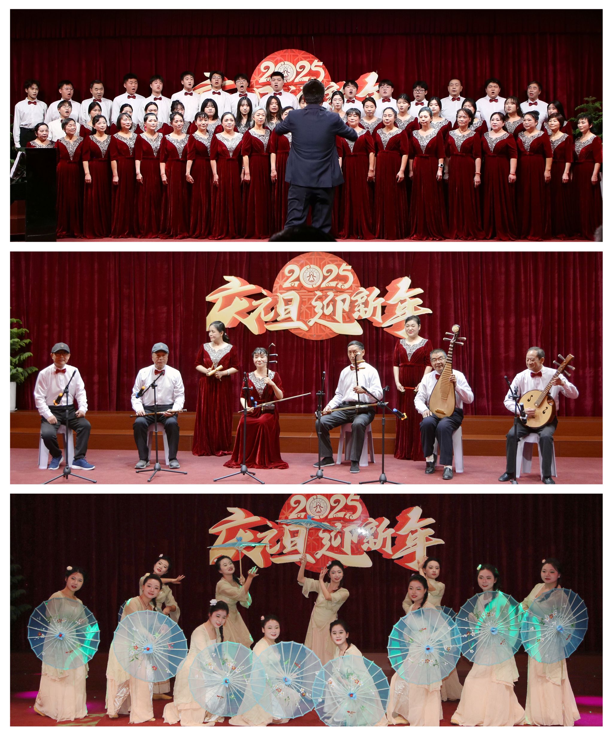 龙舞年终谢幕时,蛇跃新岁启航日。12月30日,我校在王城校区馨园职工活动中心礼堂举行2025年元旦教职工文艺汇演。学校领导卢志文、丁梧秀、曾涛、胡恩立、刘楠、上官林建出席演出现场,党委职能部门负责人、基层工会主席、老干部代表及师生代表观看了演出。