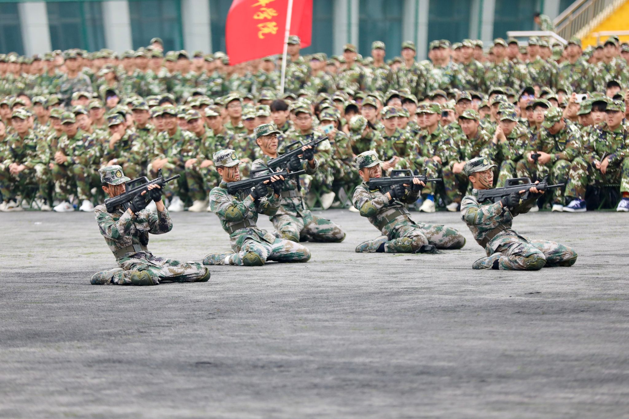 2025级6100余名新生身着迷彩,迈着铿锵有力的步伐接受检阅。同学们身姿挺拔、口号嘹亮,充分展现了军训淬炼出的过硬素质与优良作风。军体拳表演中,学子们动作刚劲有力、吼声震天,将坚韧意志融入一招一式中,赢得现场阵阵掌声。我校青年先锋营的同学们以精彩的军事战术演练,为现场师生奉献了一场视觉盛宴。