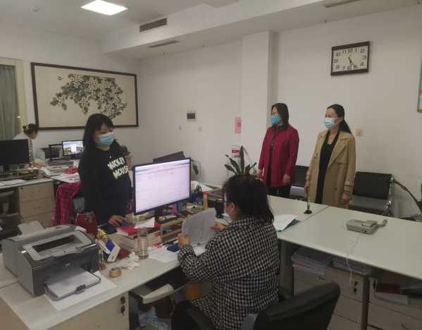 马珺逐科室看望了财务人员,对大家坚守岗位、尽职尽责的工作表示感谢,叮嘱大家一定要勤洗手戴口罩,做好自身防护,严格落实疫情防控管理要求,详细了解并检查了财务处疫情防控管理工作以及相关工作安排情况。