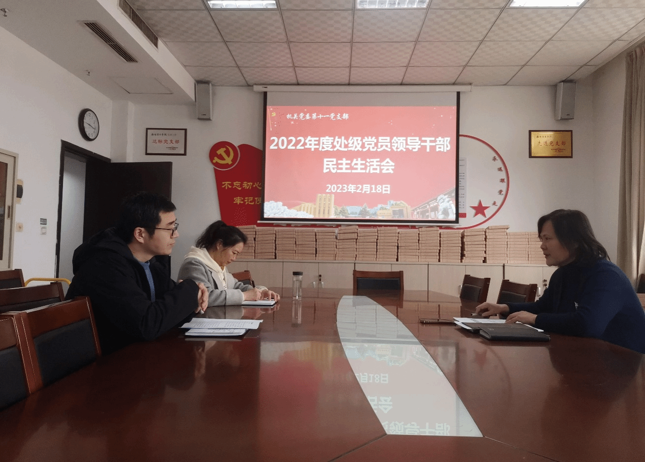 按照学校《关于认真开好2022年度处级党员领导干部民主生活会的通知》(组发[2023]1号)要求,机关党委第十一党支部于2023年2月18日上午在王城校区办公楼120室召开2022年度处级党员领导干部民主生活会,中共党员、财务处处长邹丽和中共党员副处长于石磊参加会议,非中共党员副处长黄平列席会议,会议由邹丽主持。