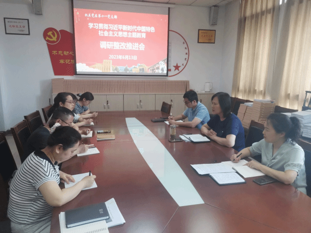 为扎实推进主题教育,持续坚持问题导向,6月13日下午,机关党委第十一党支部在办公楼120室召开主题教育调研整改推进会,科级以上干部参加会议,会议由党支部书记、财务处处长邹丽主持。