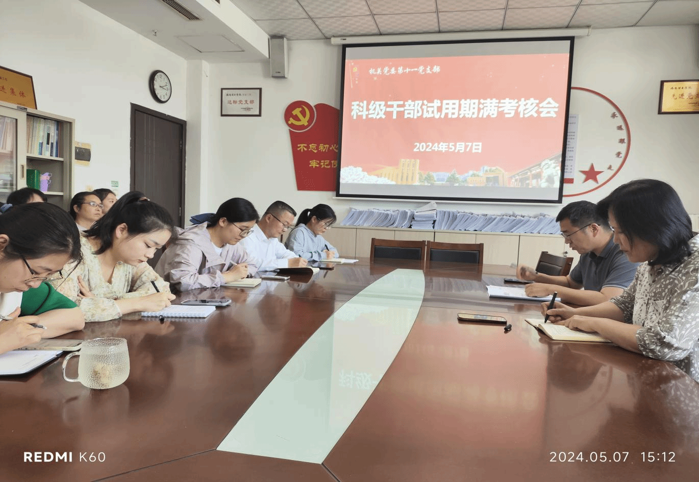 5月7日下午,财务处在办公楼120室召开新提拔科级干部任职试用期期满考核会,全体人员参加,会议由财务处处长、考核组组长邹丽主持。