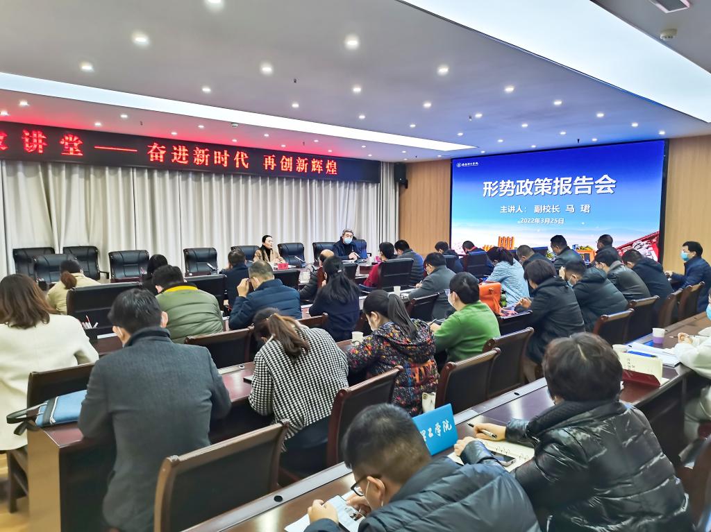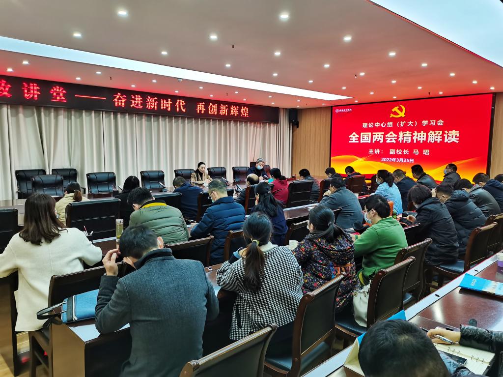首先,马珺副校长深情回顾了自2018年当选全国政协委员以来参政、议政的心路历程和责任担当,并分别从强大的国家,自信的民族;说不尽党的英明,道不尽党的恩情;睿智的领导集体,宽容的政治生态;爱国为民的奋斗者;履职尽责的政协人;担当作为,不负使命六个方面详细介绍了“两会”盛况和自己的亲身感受。同时,要求每个部门、每位同志都要和国家、学校同频共振,务实奋进,顽强拼搏,为学校的二次创业贡献自己的力量。