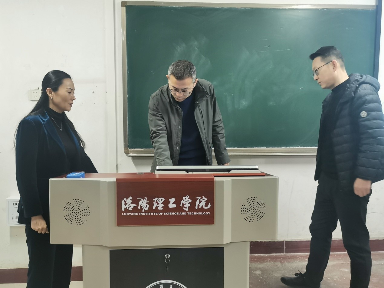 检查中,马校长认真听取智慧教室的建设进度及开学准备情况汇报。李传锋主任详细演示了智慧教室新设备的操作流程和技术特点,马校长对信息化技术中心和参与施工的单位在寒假当中加班加点、昼夜施工,确保工程进度给予了肯定和鼓励。马校长指出,我校作为豫西地区唯一的一个省级智慧教学示范校建设单位,要把智慧教室建成亮点、建成省内标杆,希望大家把智慧教室按时保质保量建设好、调试好,确保新学期教学正常顺利进行。