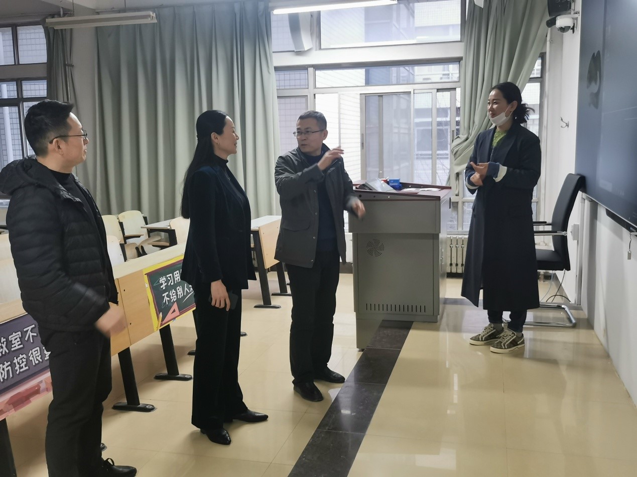 2022年2月27日下午,马珺副校长在信息化技术中心主任李传锋等相关人员陪同下,到王城校区教学楼A、B、C、D、E、F检查了智慧教室、教学视频监控中心等智慧教学环境新学期开学准备情况。