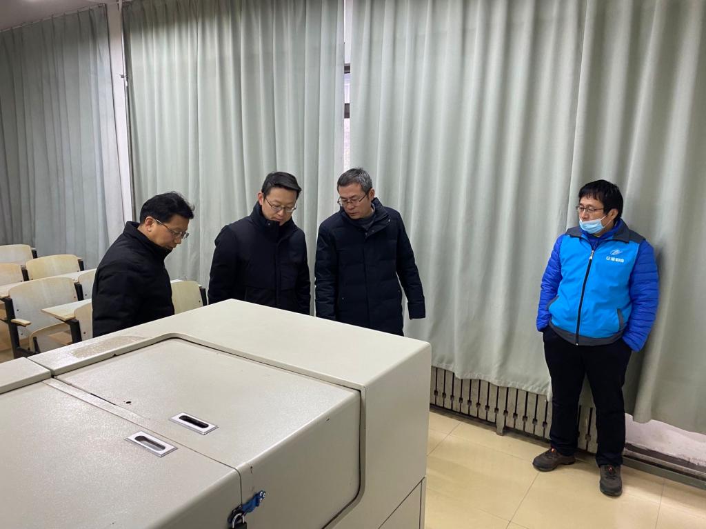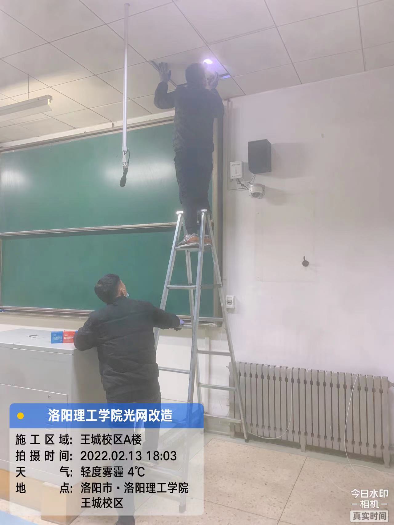 按照河南省本科高等学校智慧教学建设示范校指标要求,确保我校多媒体教室全光网改造项目及智慧教室一期建设项目能够在寒假期间安全、高效、保质保量完工,2月14日上午,信息化技术中心主任李传锋带领相关人员到王城校区公共教学楼现场检查施工进展情况。