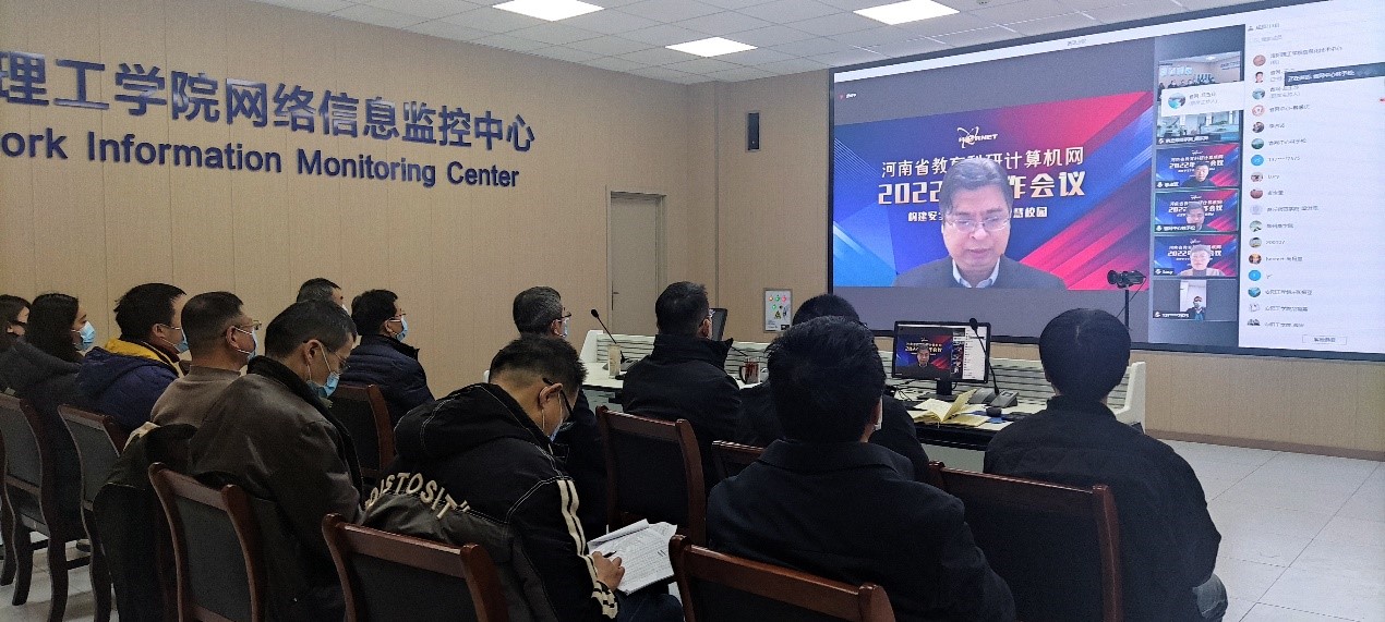 1月14日上午,河南省教育科研网网络中心举行河南省教育科研计算机网2022年工作视频会议。我校信息化技术中心主任李传锋、副主任刘孟贺、梁凯及中心网络安全相关工作人员在图书信息楼监控大厅参加了此次会议。同时,线上省内200余个高校、企业、专家和工作人员参加了会议,会议由河南省教育科研网网络中心常务副主任林予松主持。