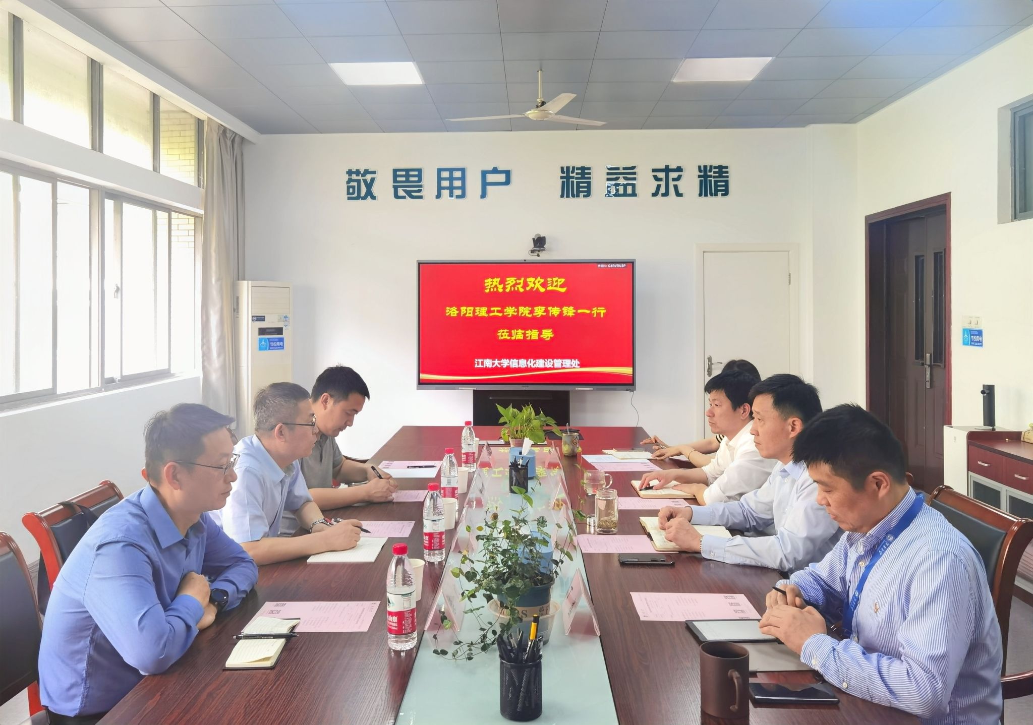 在对口交流环节,信息化技术中心主任李传锋一行4人到江南大学信息化建设管理处进行深入考察交流。江南大学信息化建设管理处处长王强及相关业务骨干出席会议。