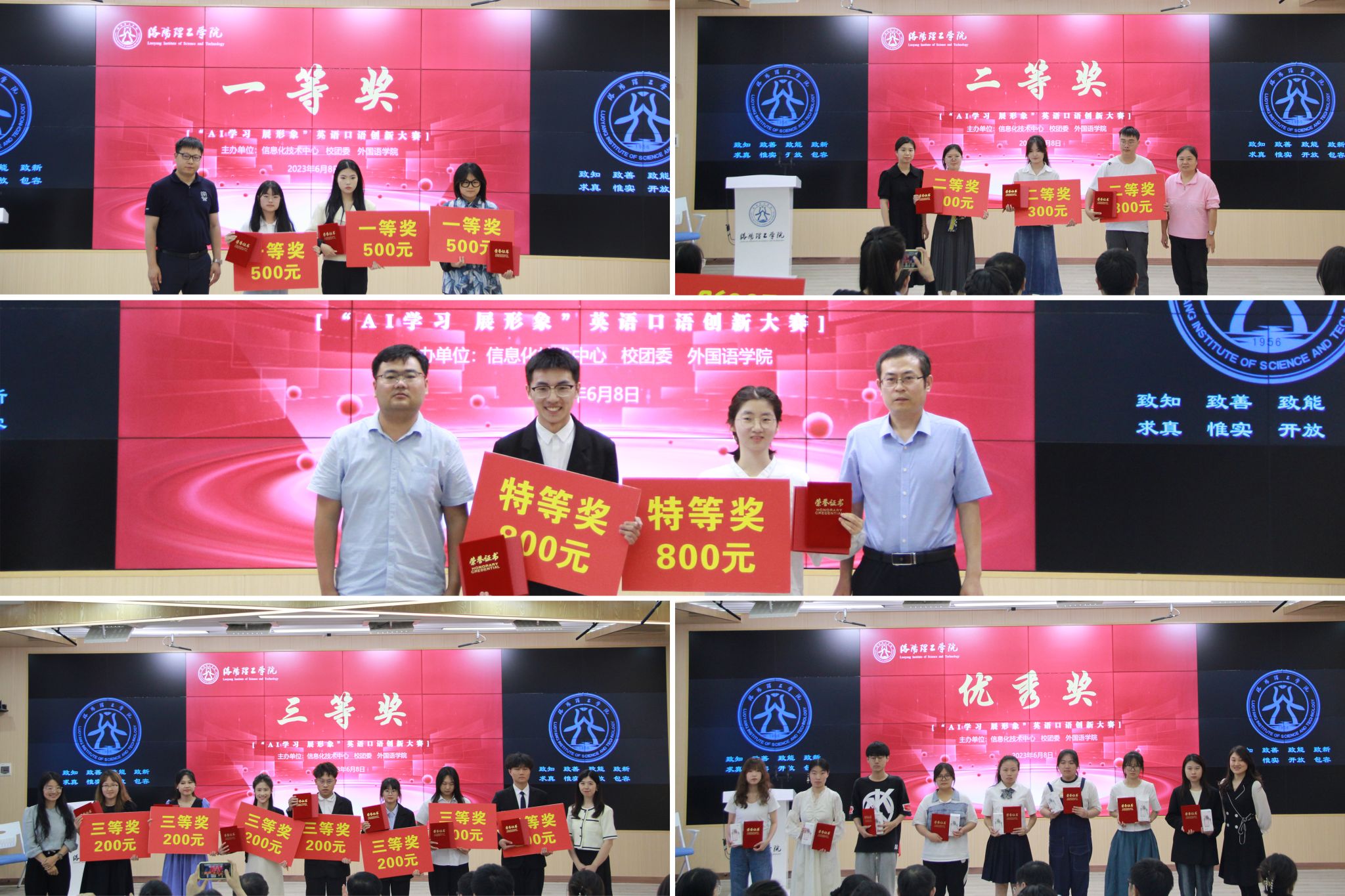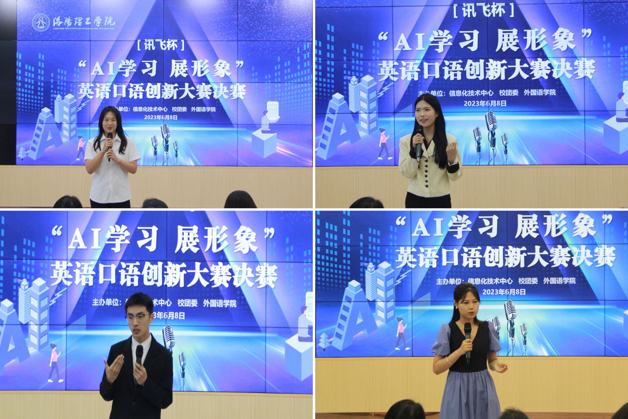 6月8日下午,在王城校区公共教学楼AE507举办洛阳腾博官网诚信为本专业服务讯飞杯“AI学习、展形象”英语口语创新大赛决赛。来自全校各学院的30位同学参加决赛,信息化技术中心、校团委、外国语学院相关负责人及科大讯飞公司代表等出席并为获奖选手颁奖。决赛由信息化技术中心段琼主持。