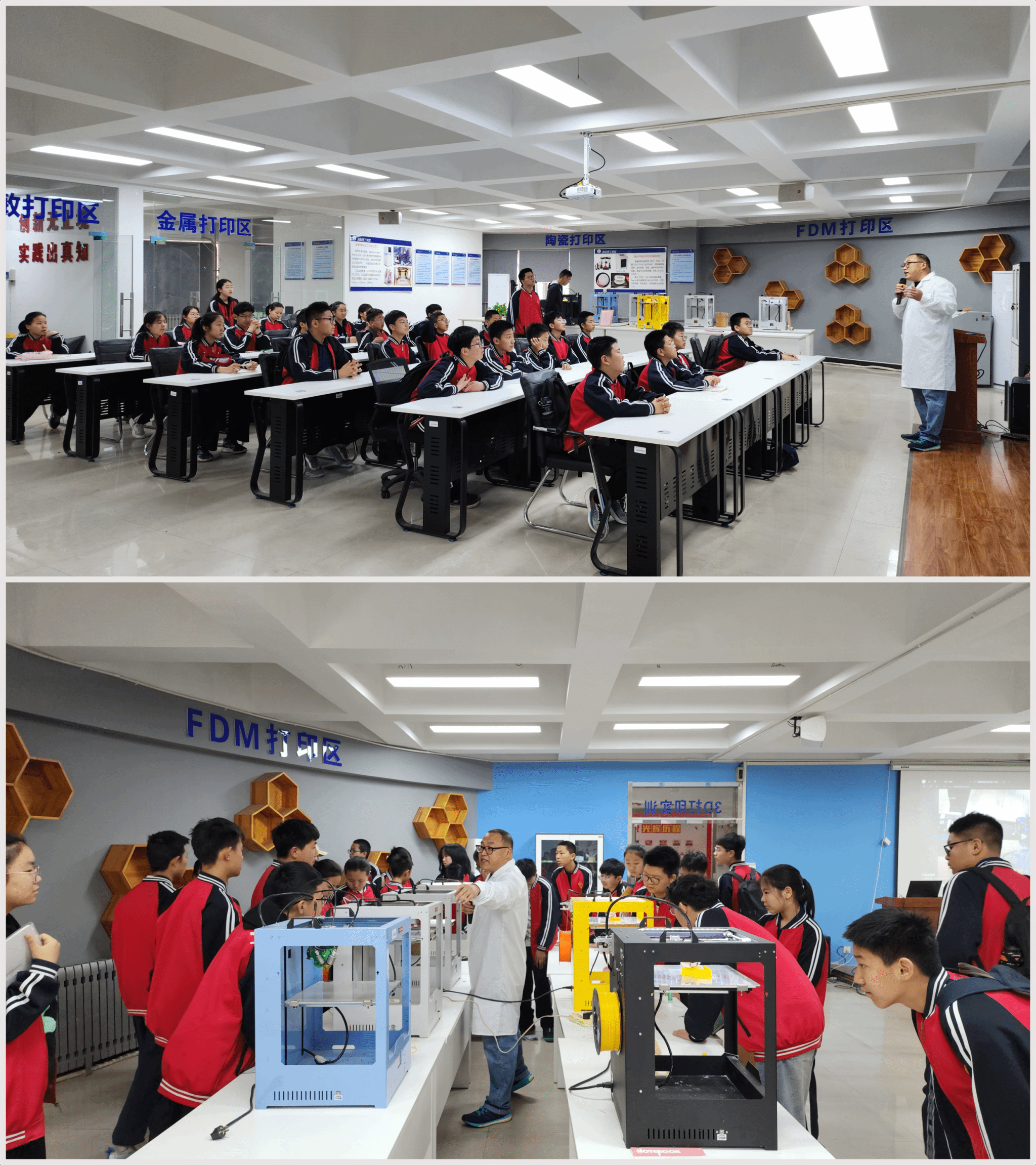 活动中,学生们参观了省级劳模创新工作室,深入领略了劳模精神与科技创新实践的深度融合,深切感受到劳动模范对事业的执着追求和无私奉献精神。随后,学生们到学校智慧教室与实验室进行实地体验。在智慧教室,学生们感受到现代化教学设施带来的便捷与高效;在三维数字化与3D打印实训基地,目睹了3D打印技术的神奇魅力,对数字化时代的制造方式有了更为直观的认识;在智能机器人实验室,体会到科技带来的无限可能;在物理实验中心,通过亲手操作实验器材,深入了解到物理学的奥秘,激发了探索科学的浓厚兴趣。