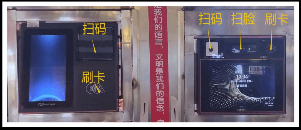全体师生后续在开水房、淋浴房,可以使用实体卡刷卡用水,或手机预约用水(虚拟卡支付),请认准一校通水控消费终端,如下图2所示。