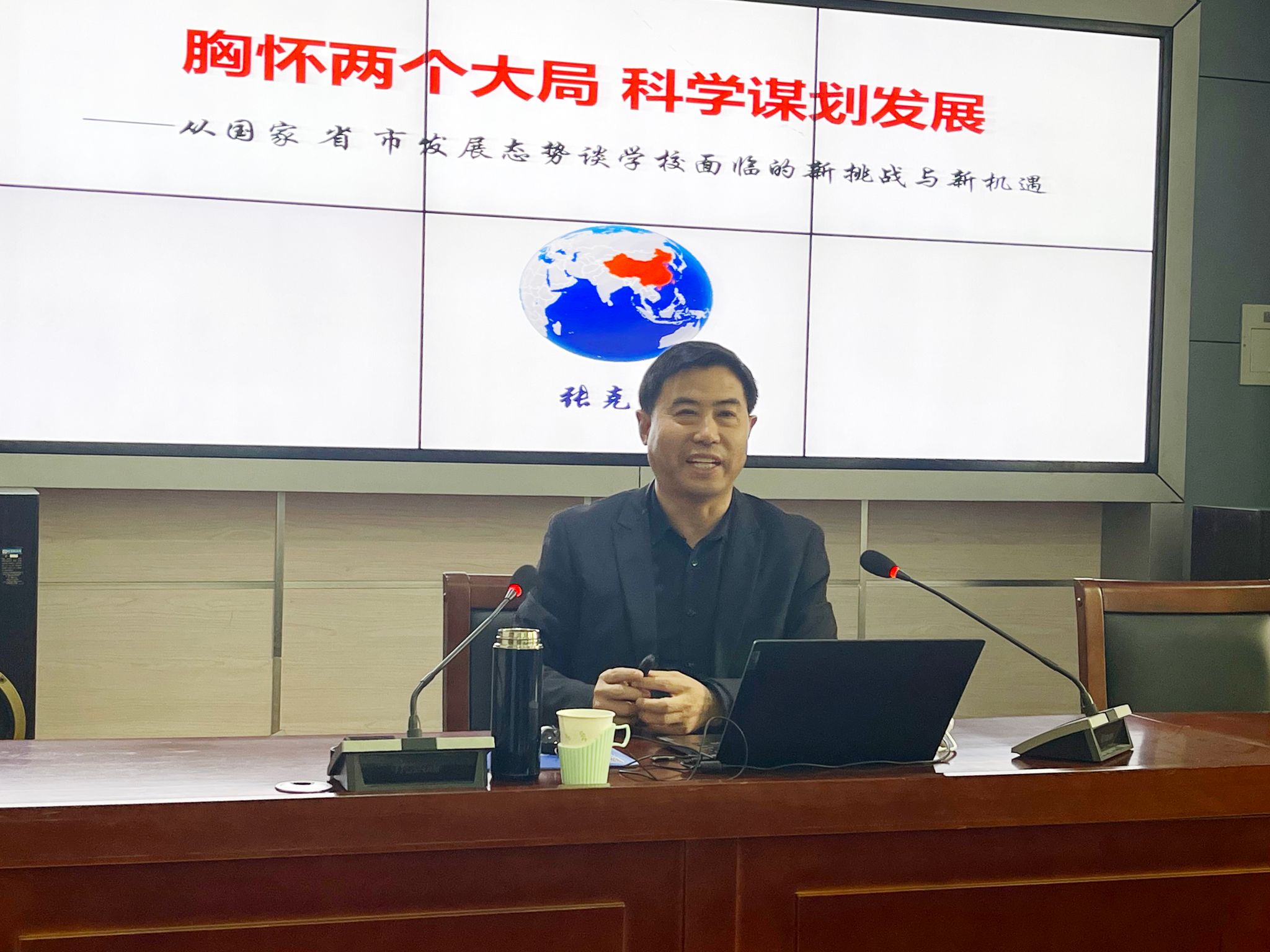 3月23日下午,信息化技术中心在王城校区图书信息楼705会议室开展形势政策宣讲,邀请我校发展规划处处长张克胜作题为《从国家、省、市发展态势谈学校面临的新挑战与新机遇》的报告。党支部书记刘庆伟主持报告会,信息化技术中心全体教职工参加学习。