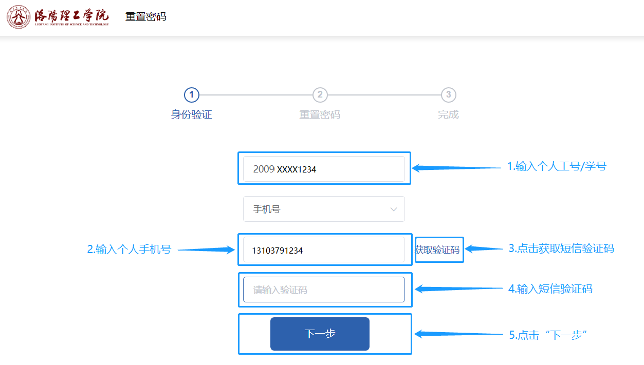 信息化技术中心已将我校师生员工手机号导入平台,只需点击“忘记密码”填写手机号,即可重置密码。