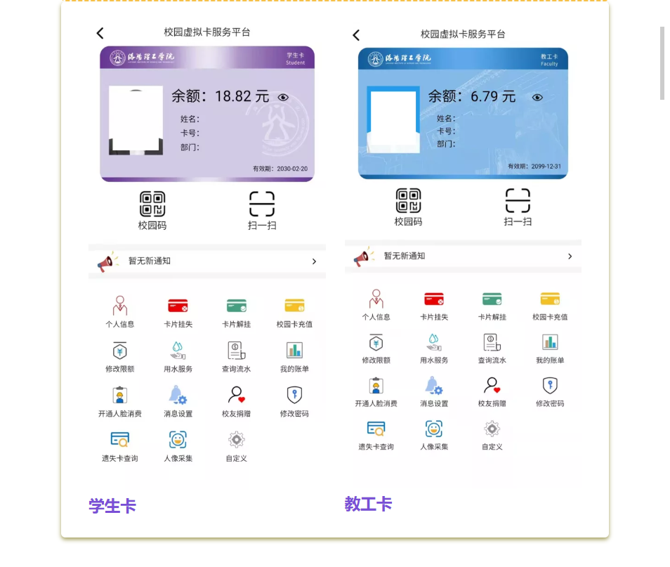 全校一卡通系统升级后,我们拥有了一张自己的校园虚拟卡!