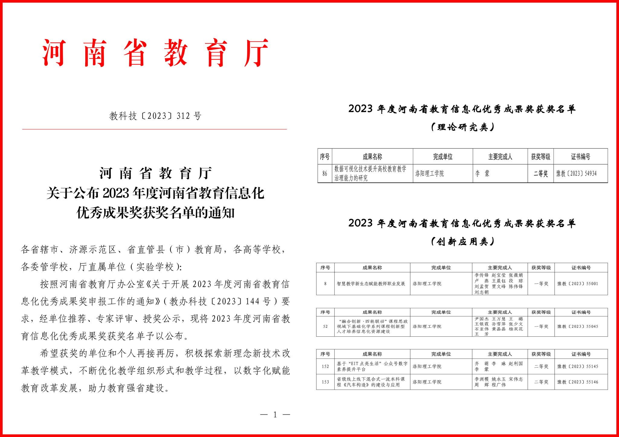 近日,河南省教育厅下发了《关于公布2023年度河南省教育信息化优秀成果奖获奖名单的通知》(教科技〔202...