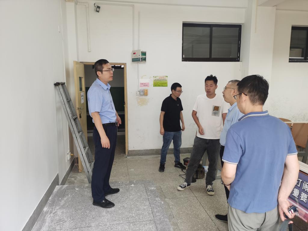 8月17日上午,信息化技术中心书记刘庆伟、主任李传锋带领相关人员到开元校区教学楼现场检查智慧教室施工...