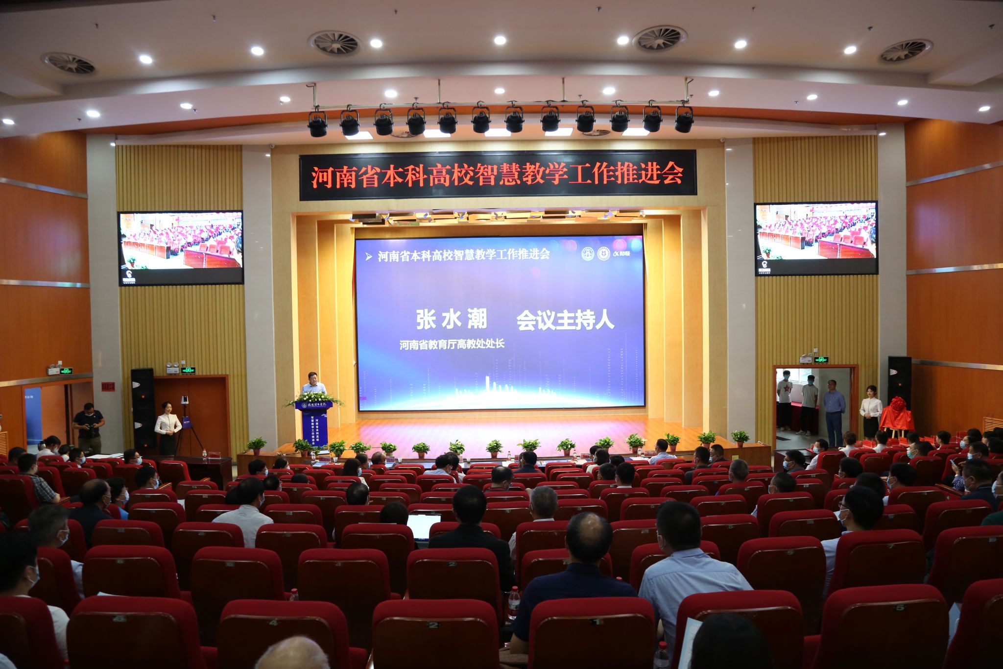 河南省本科高校智慧教学工作推进会在我校举行全体起立奏唱国歌省教育厅党组成员、副厅长、一级巡视员刁...