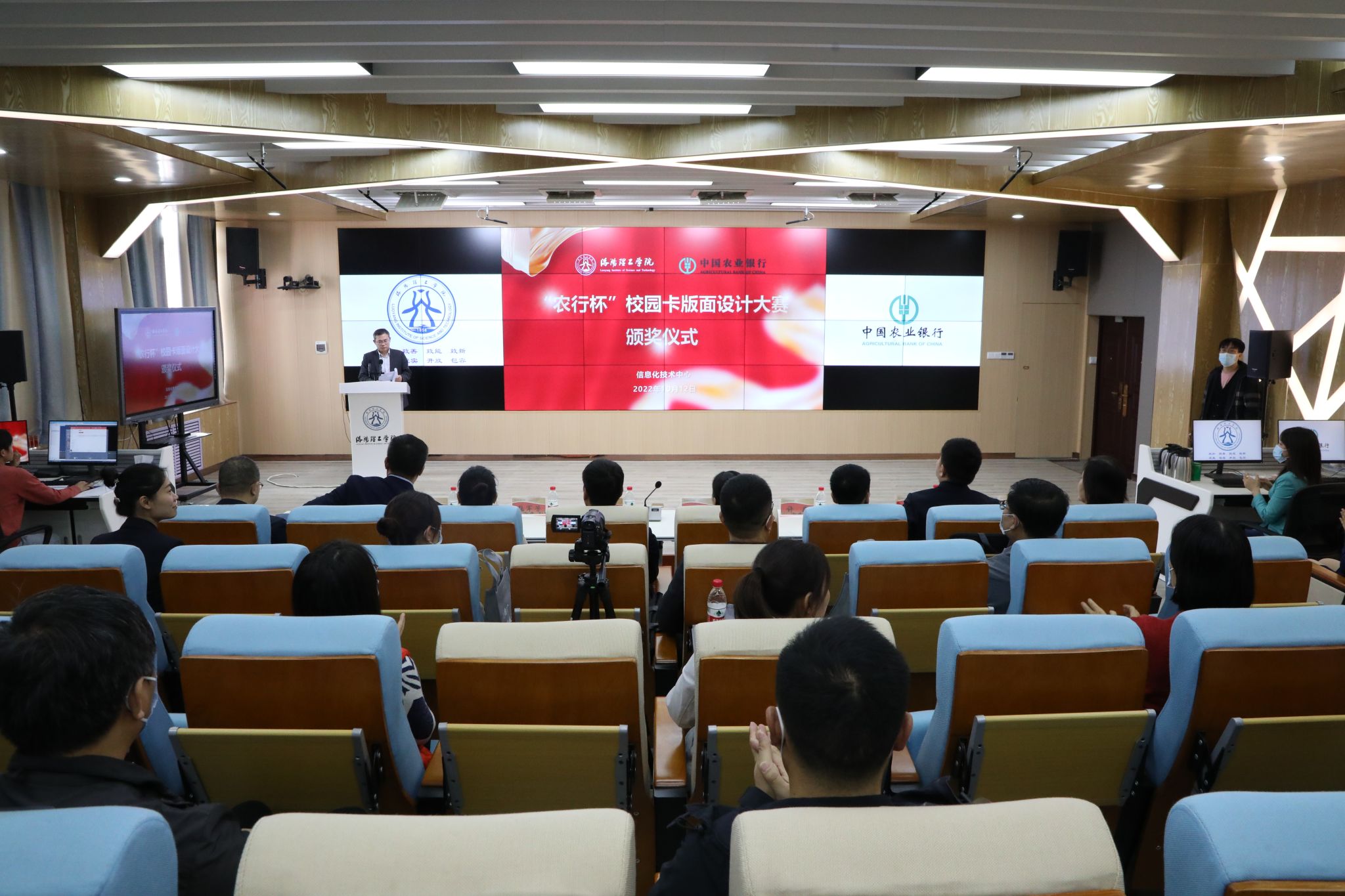“农行杯”校园卡版面设计大赛颁奖仪式参加颁奖仪式主要嘉宾农业银行洛阳分行副行长王彦武、副校长马珺...